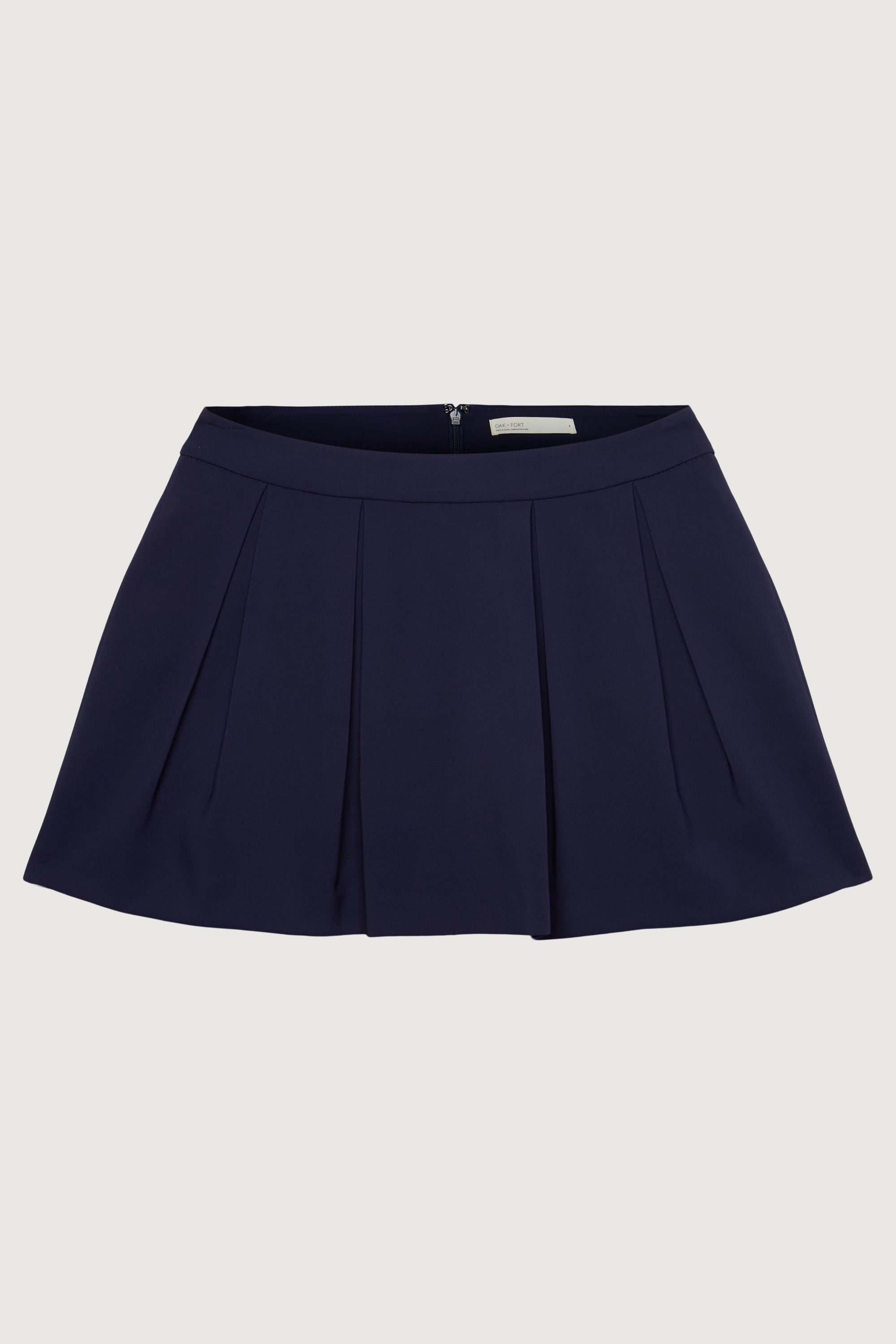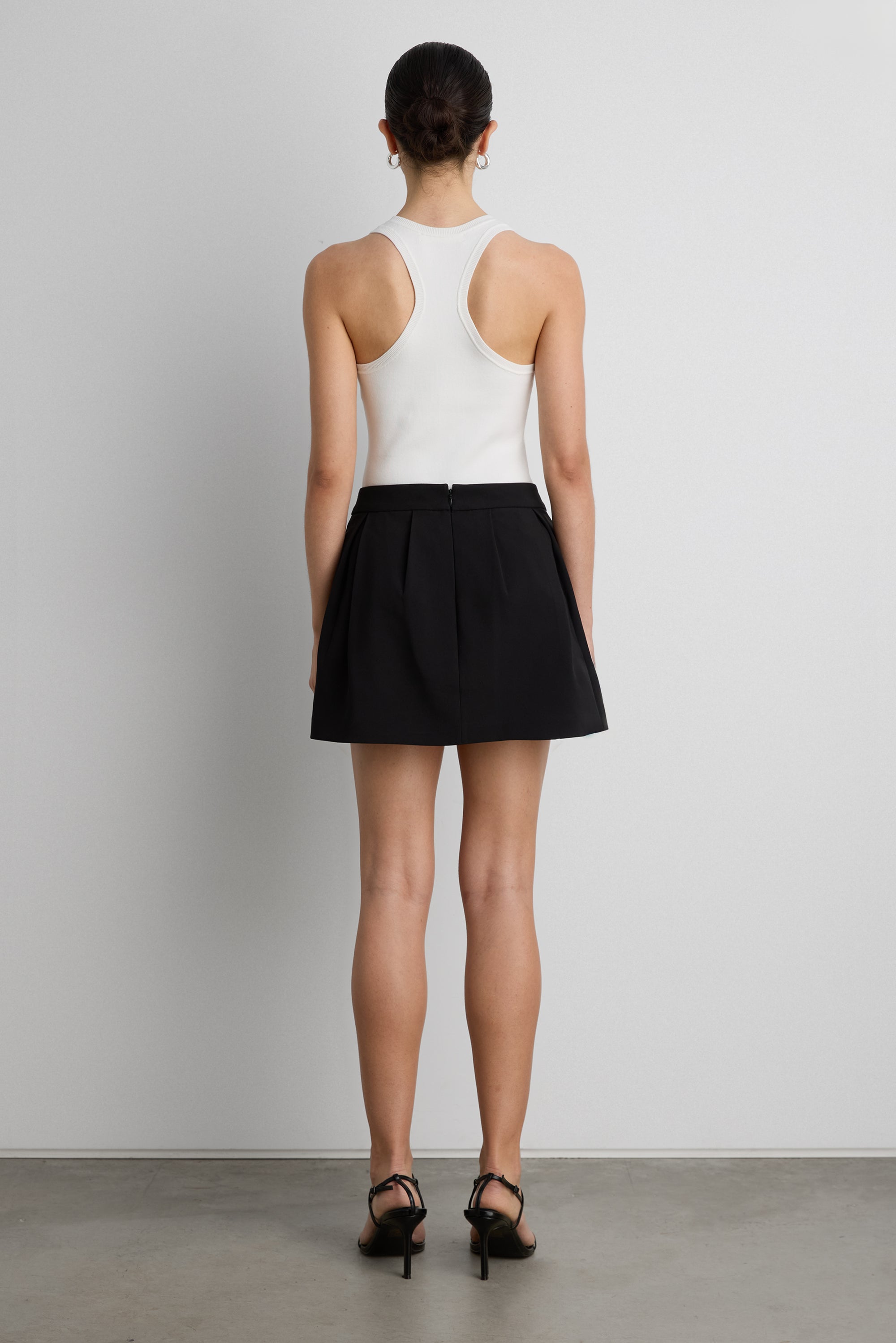 This A-line mini skirt is made from a softly structured suiting fabric with a 4-way stretch for added comfort. It's lined with shorts and has a high-rise waist with large pleat for extra volume.