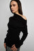 ASYMMETRICAL OFF-SHOULDER RIBBED KNIT TOP