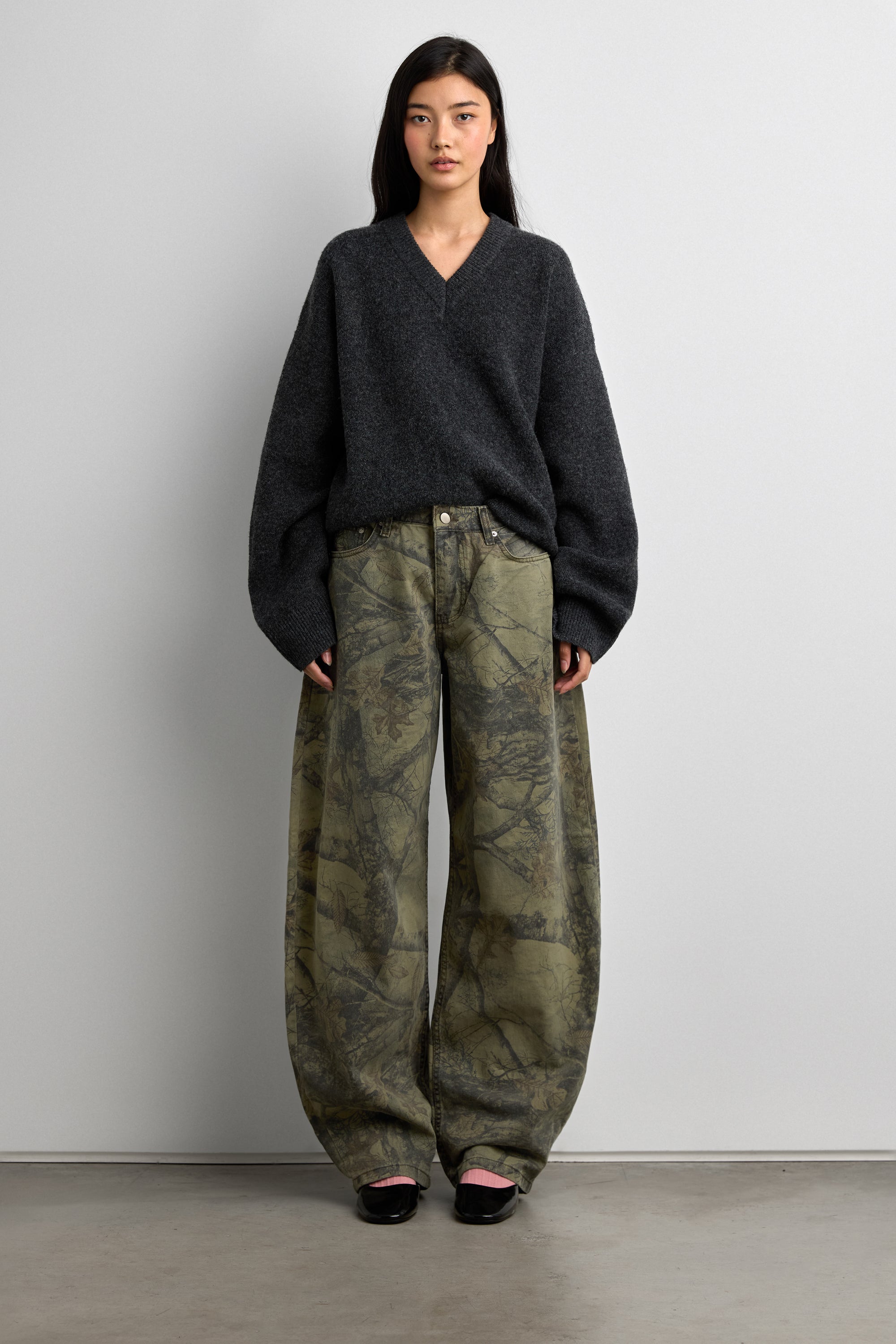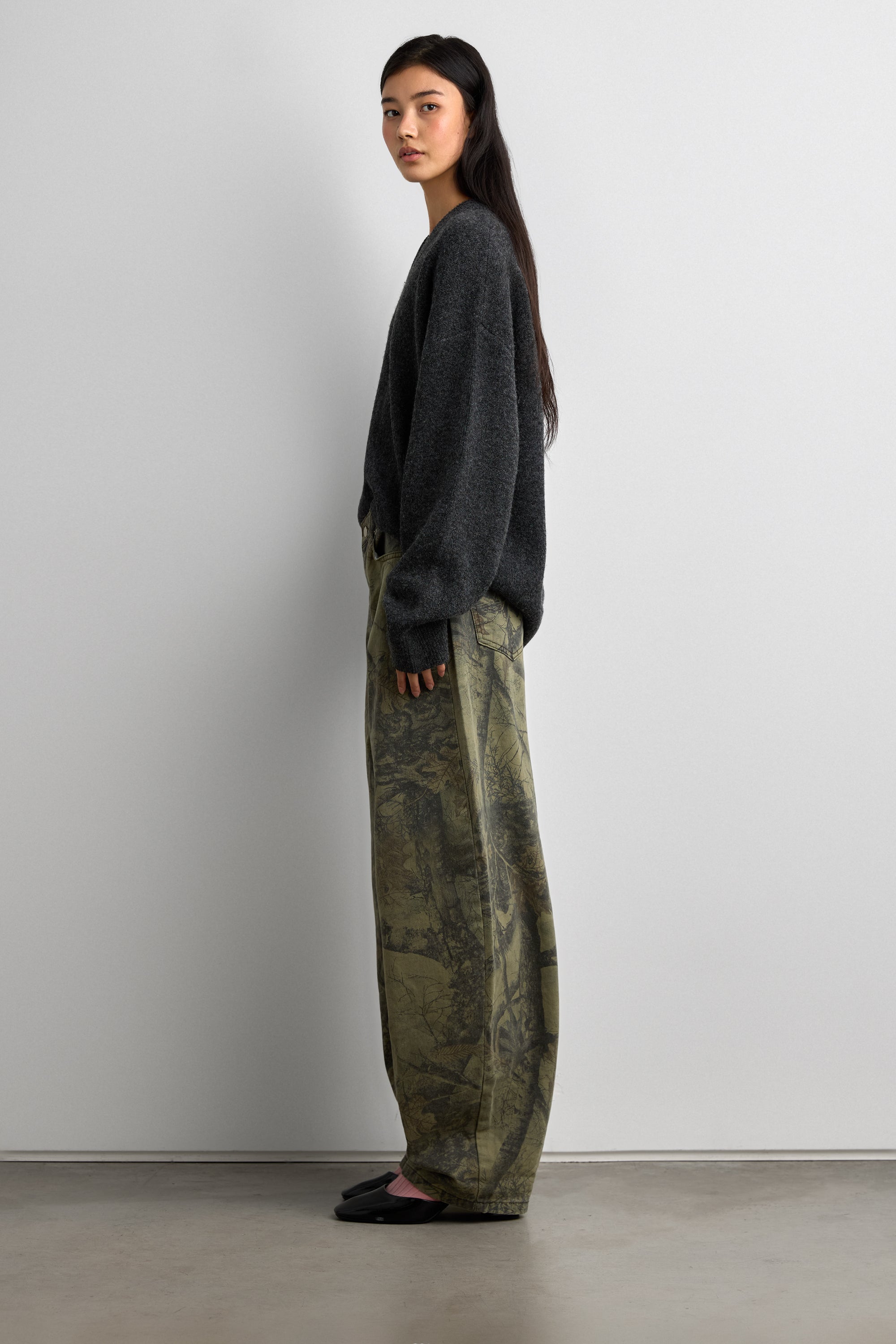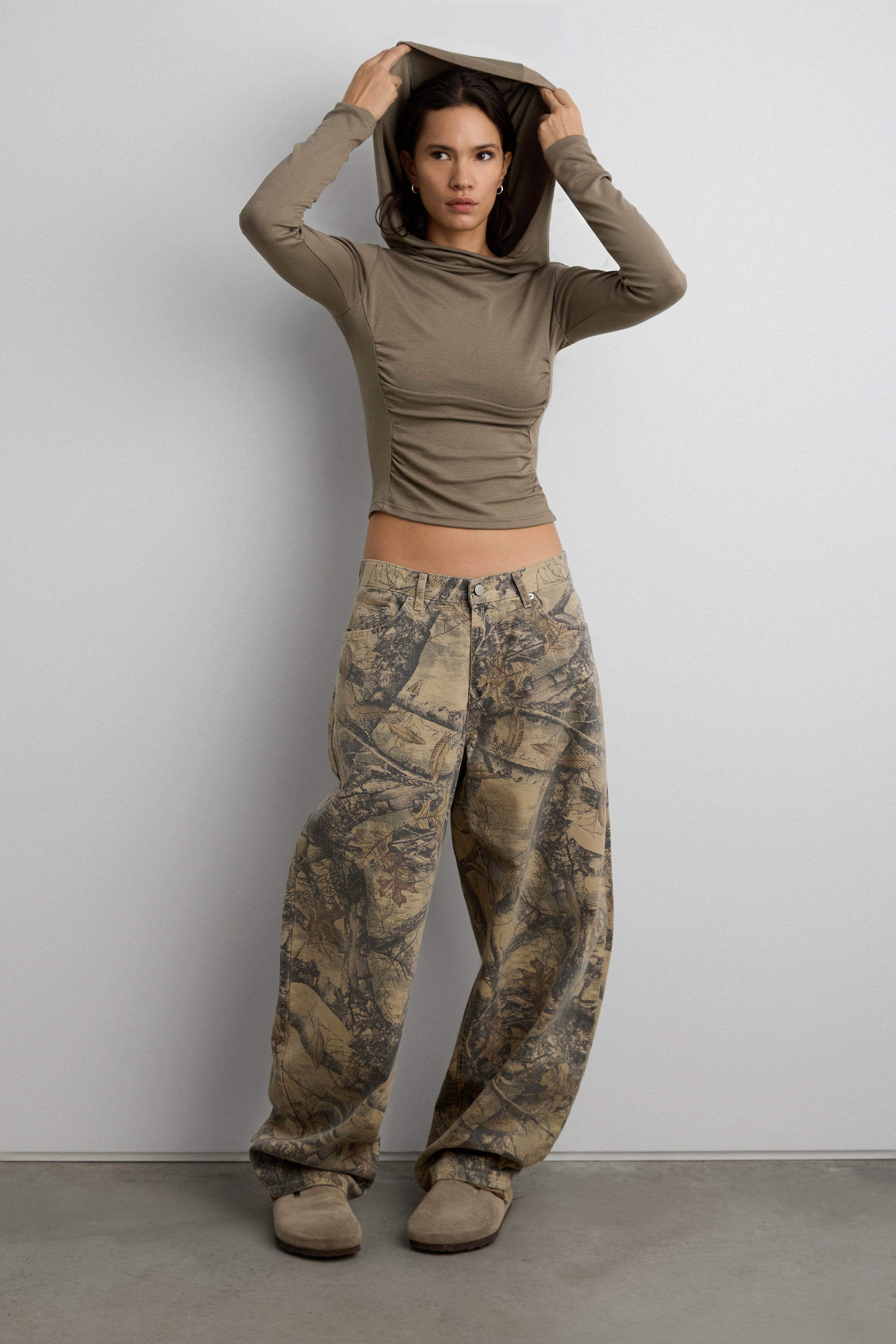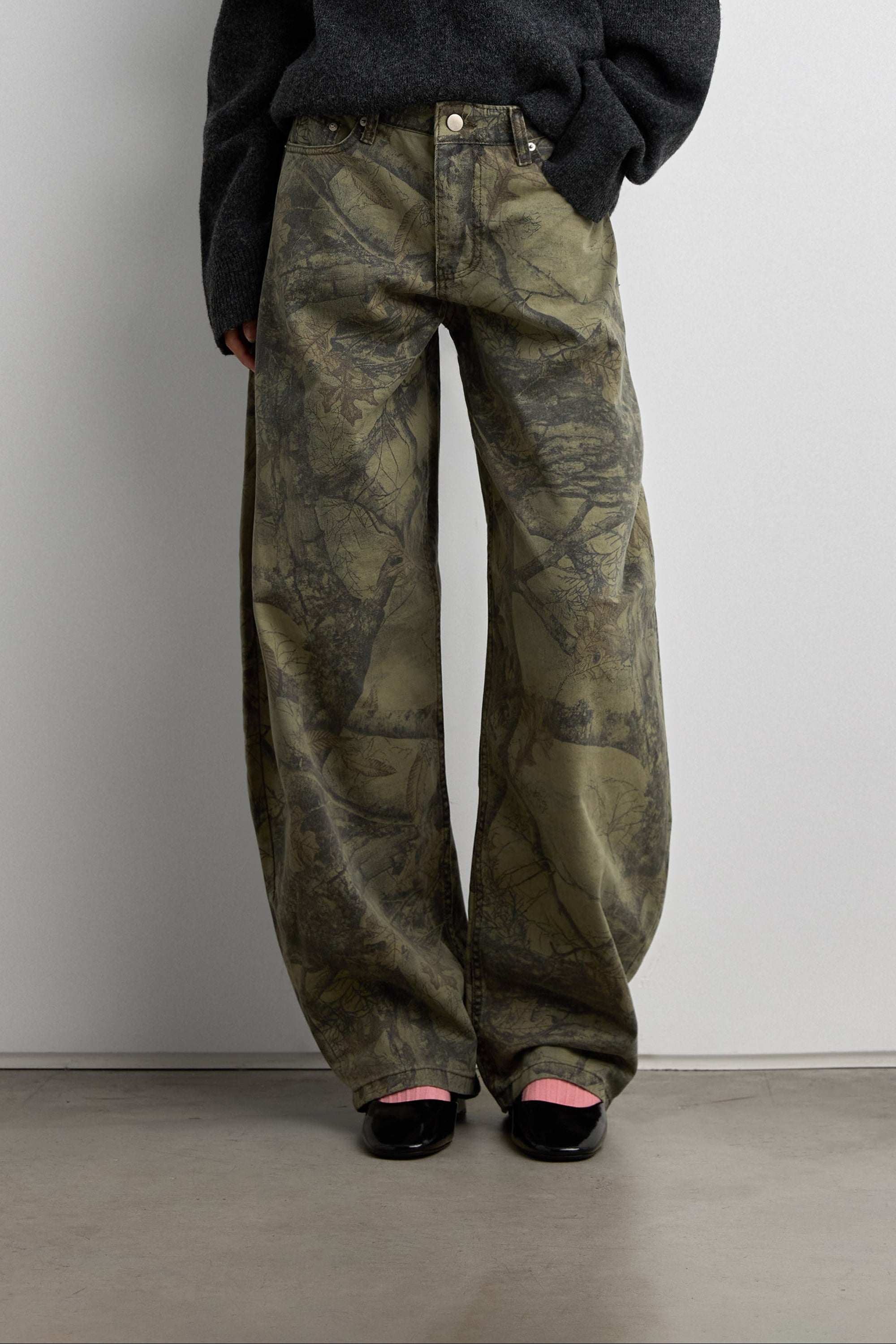 CAMO PRINT BARREL LEG PANT