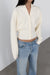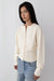 Natural corozo buttons. Ribbed trims. Cinched waist design. Dropped shoulders.