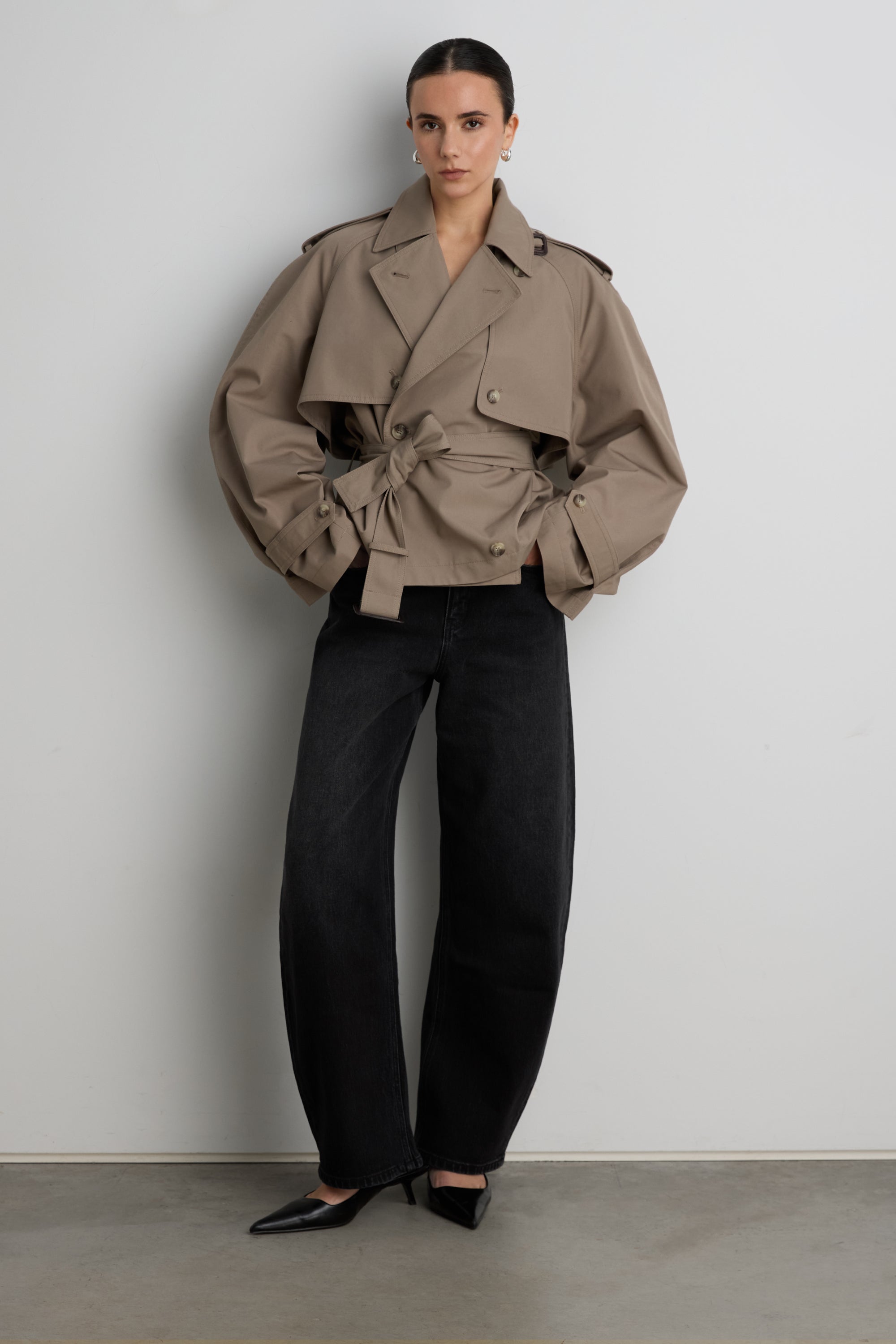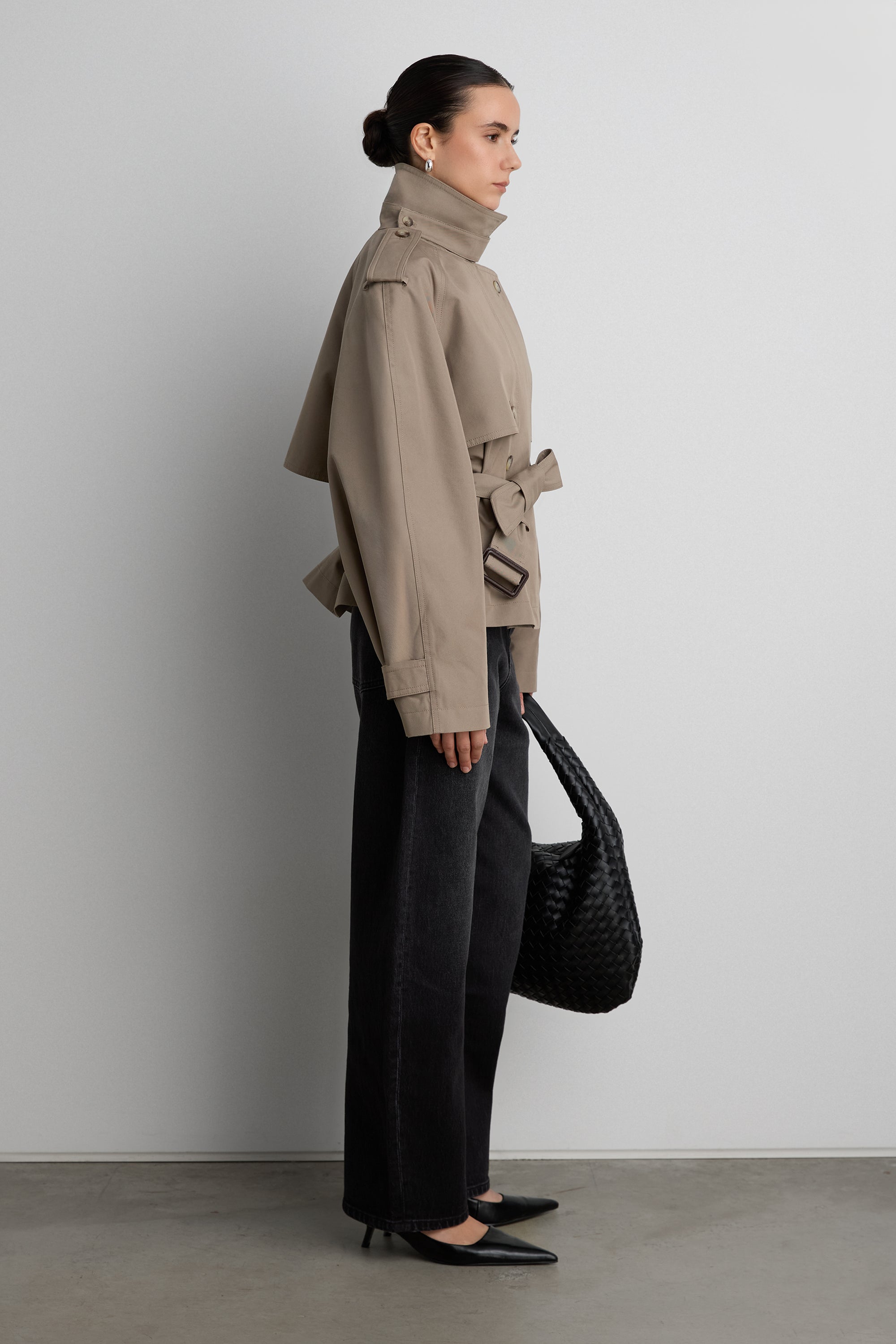 WATER RESISTANT SHORT BELTED TRENCH COAT