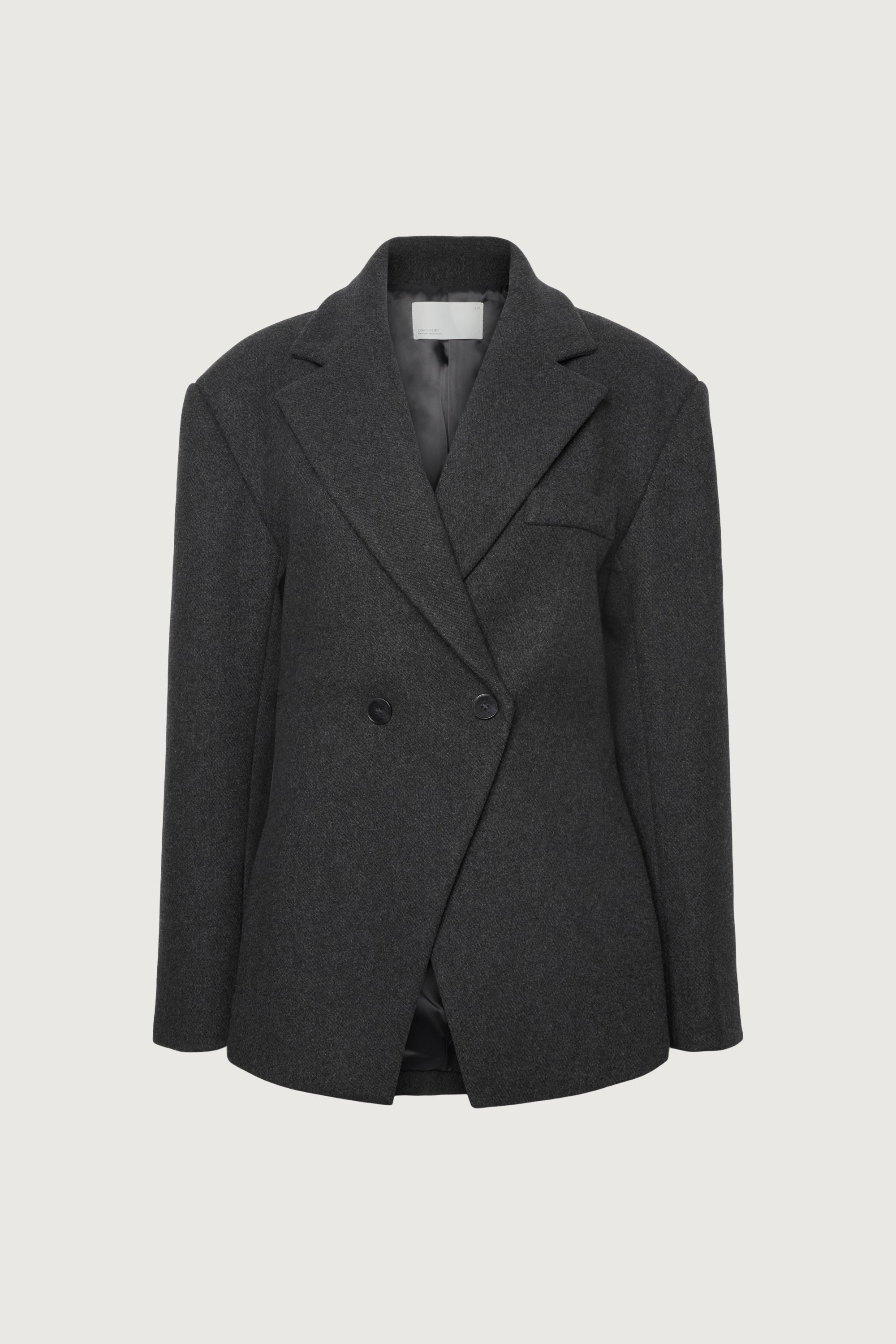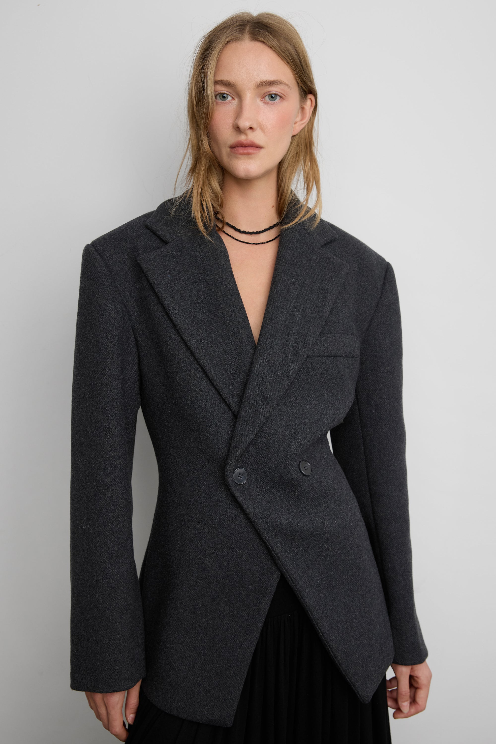 DOUBLE-BREASTED WOOL BLEND WAIST BLAZER COAT