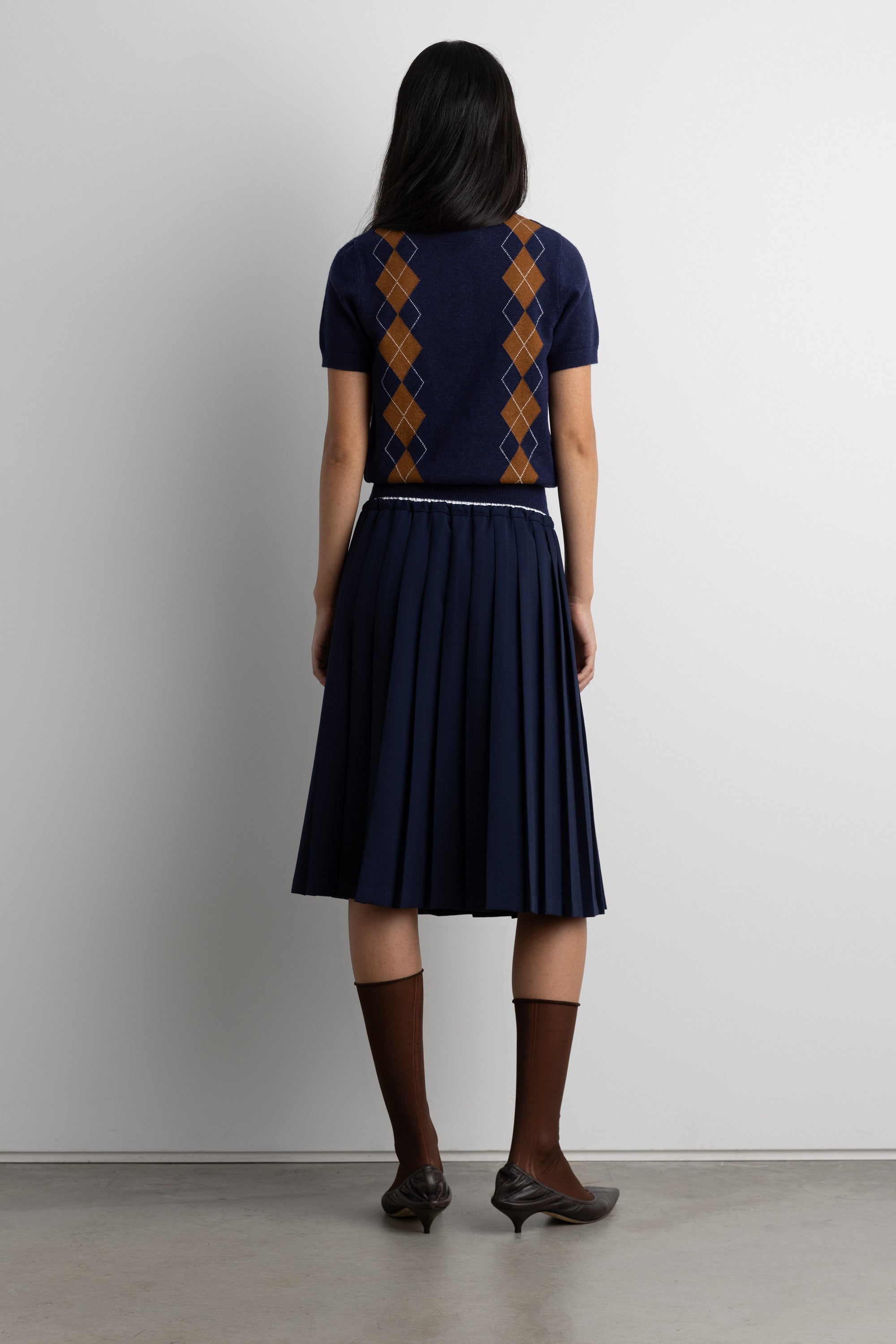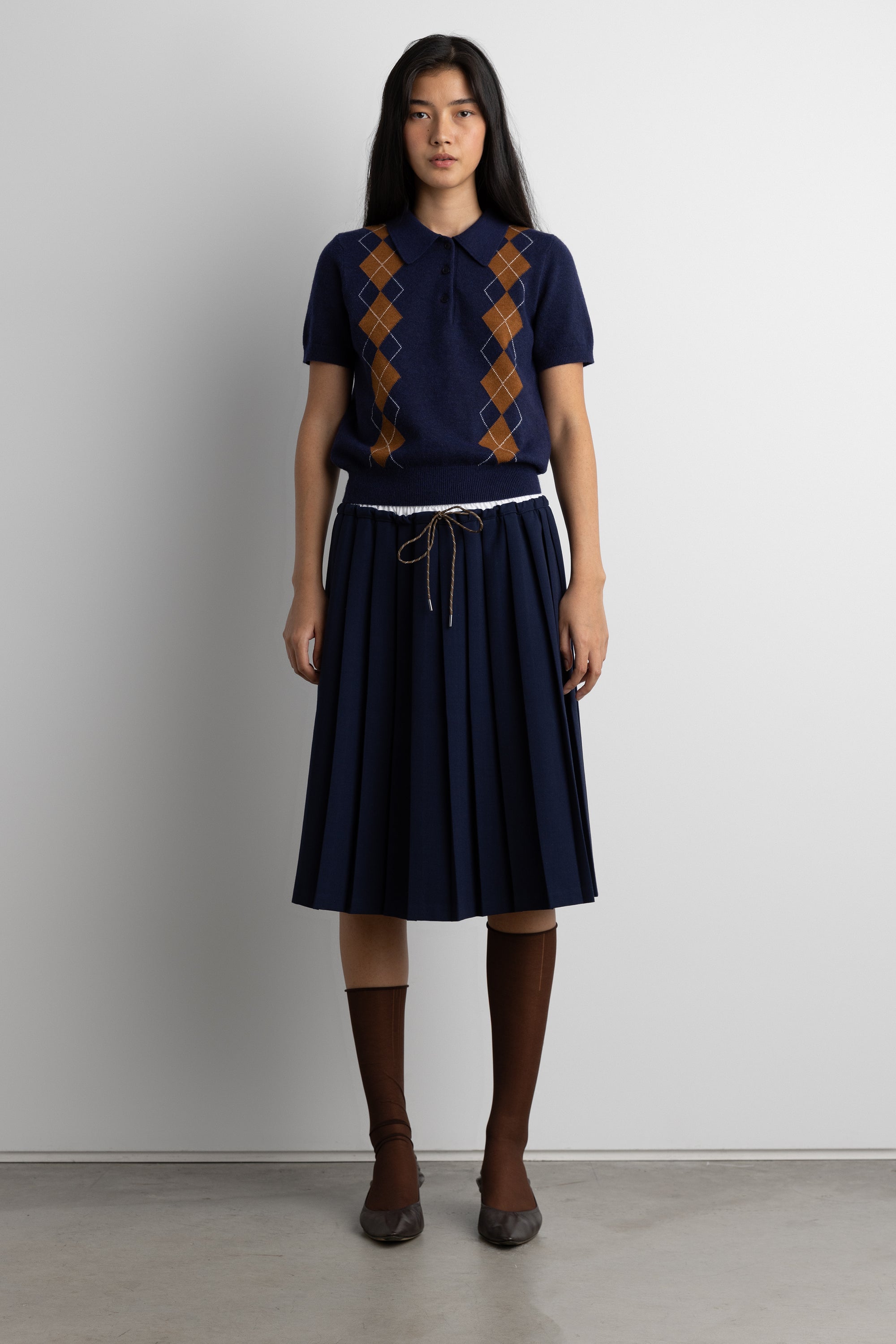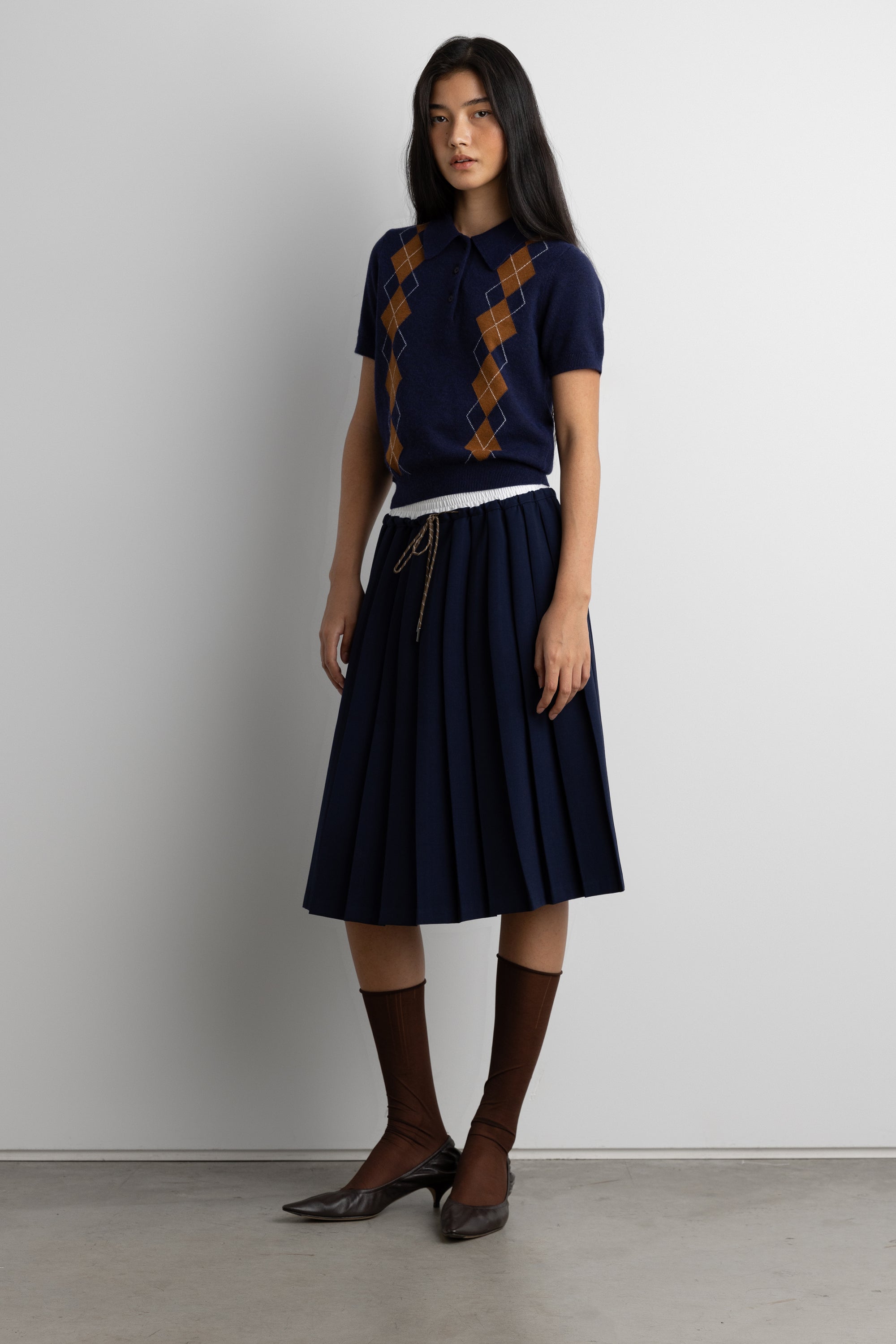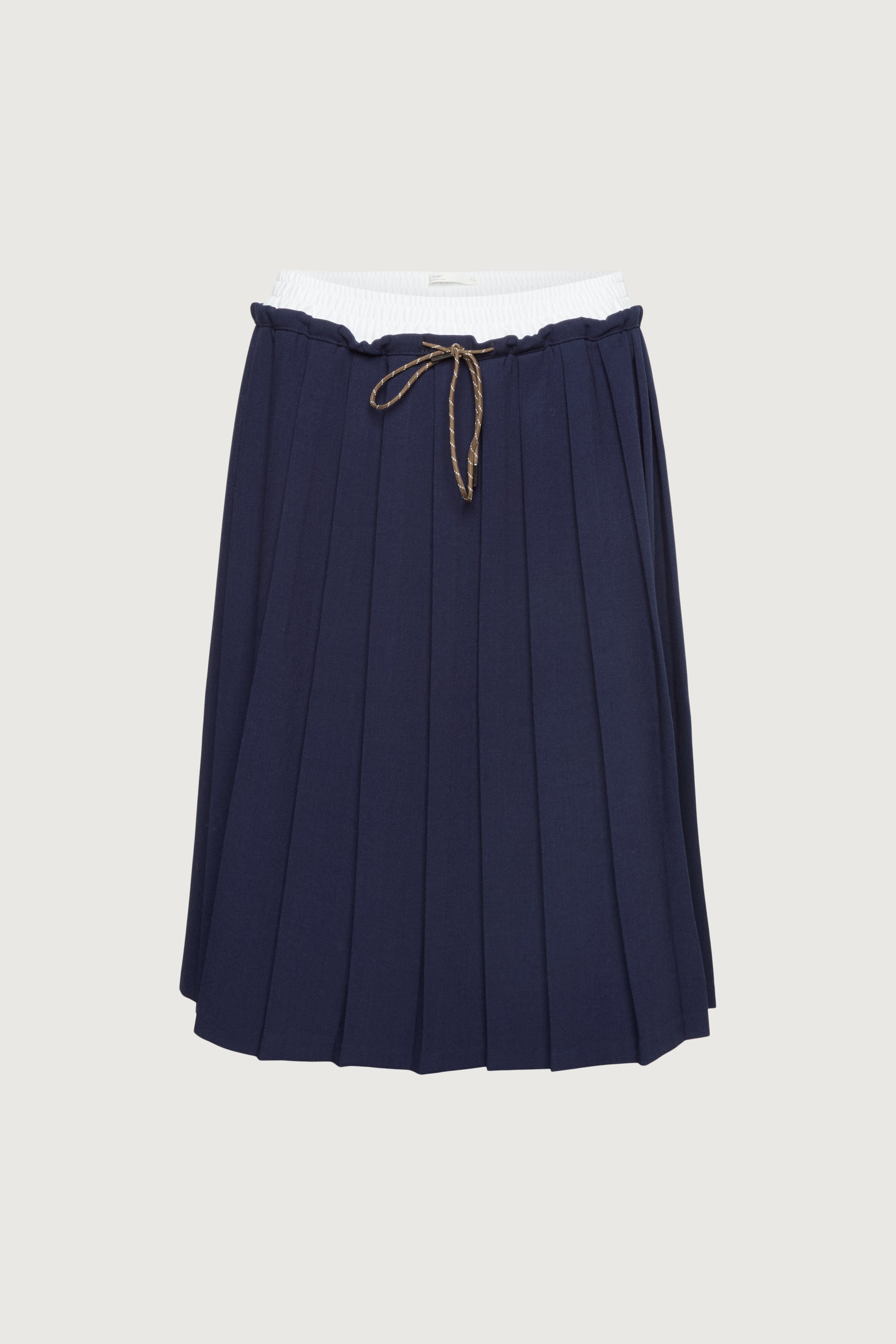 This midi pleated skirt is made in a relaxed fit with a contrast exposed elasticated waist. It's detailed with a rope-like drawstring. Pair yours with a button up cardigan and loafers.