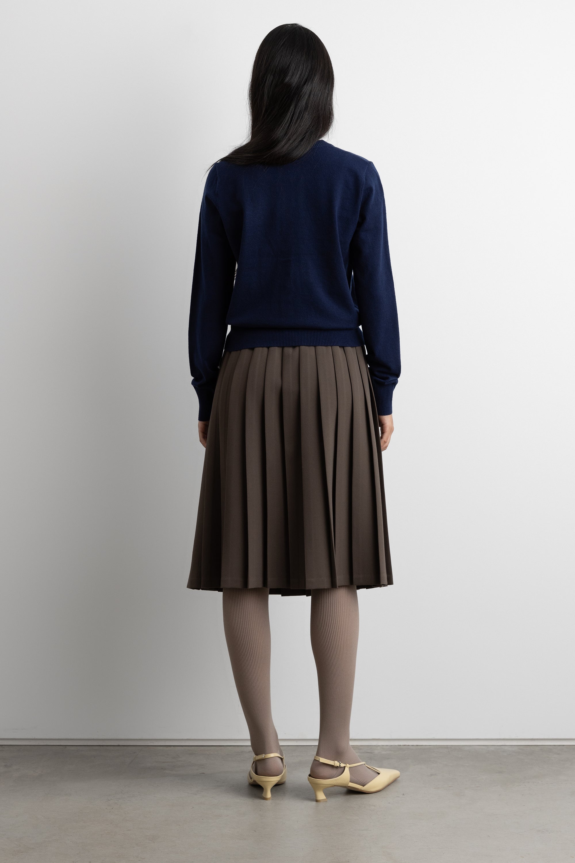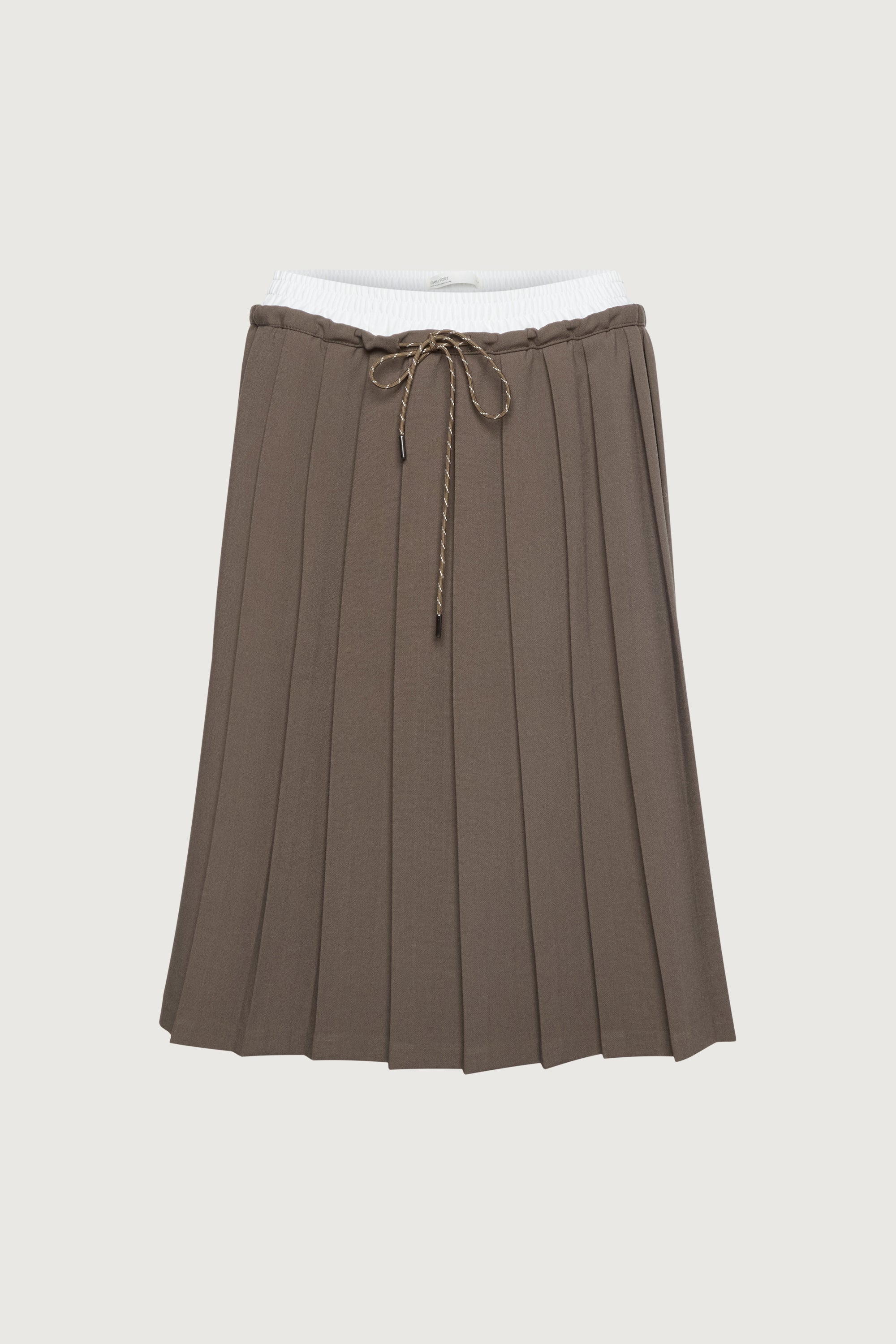EXPOSED WAIST PLEATED MIDI SKIRT