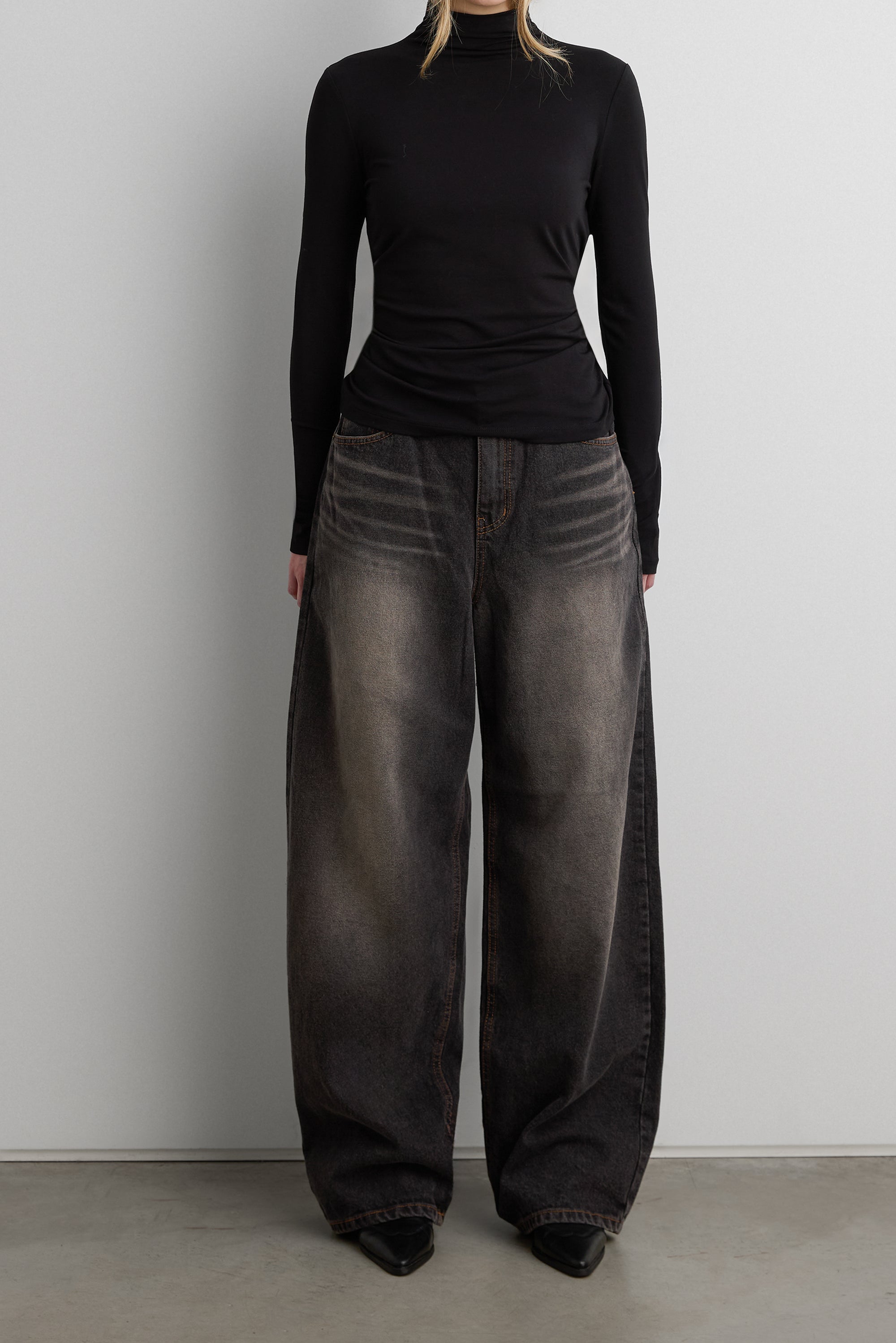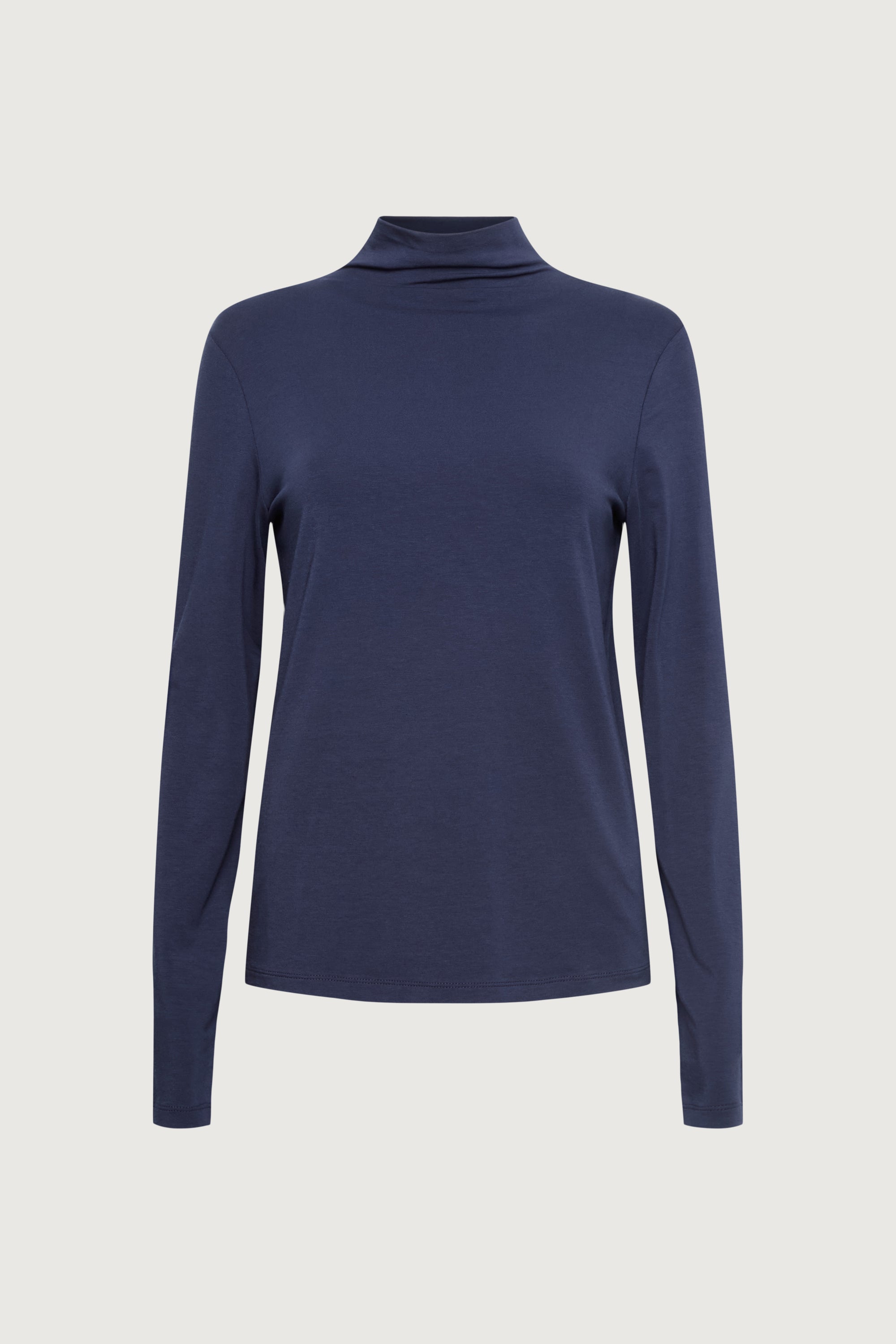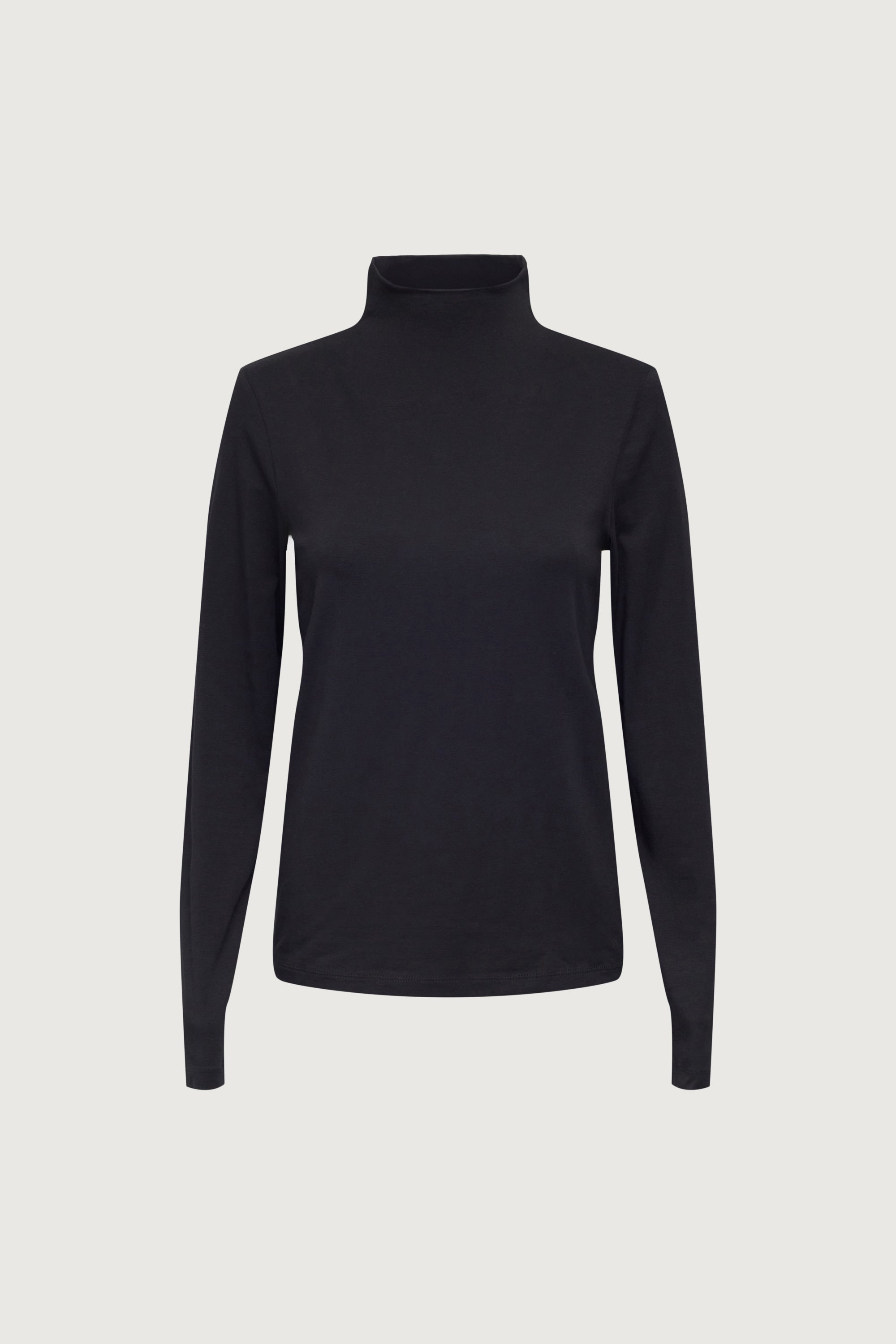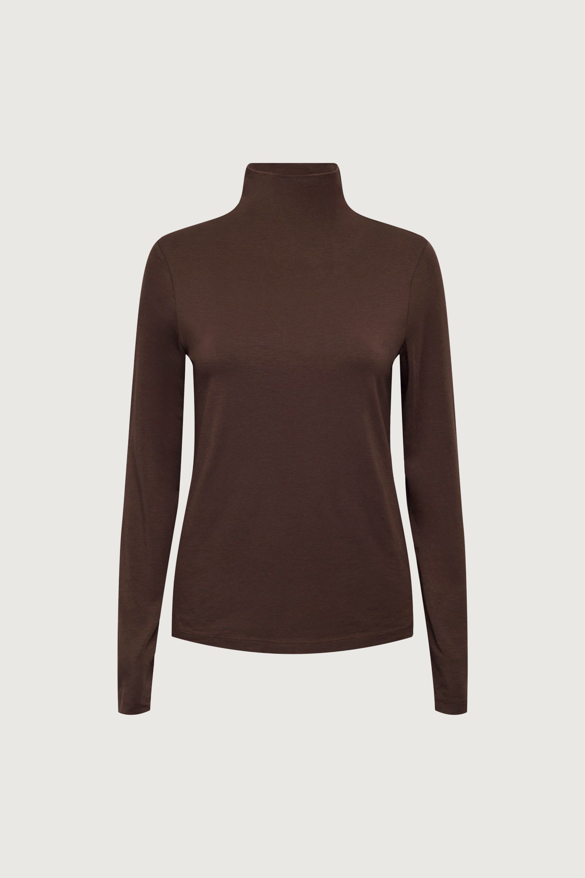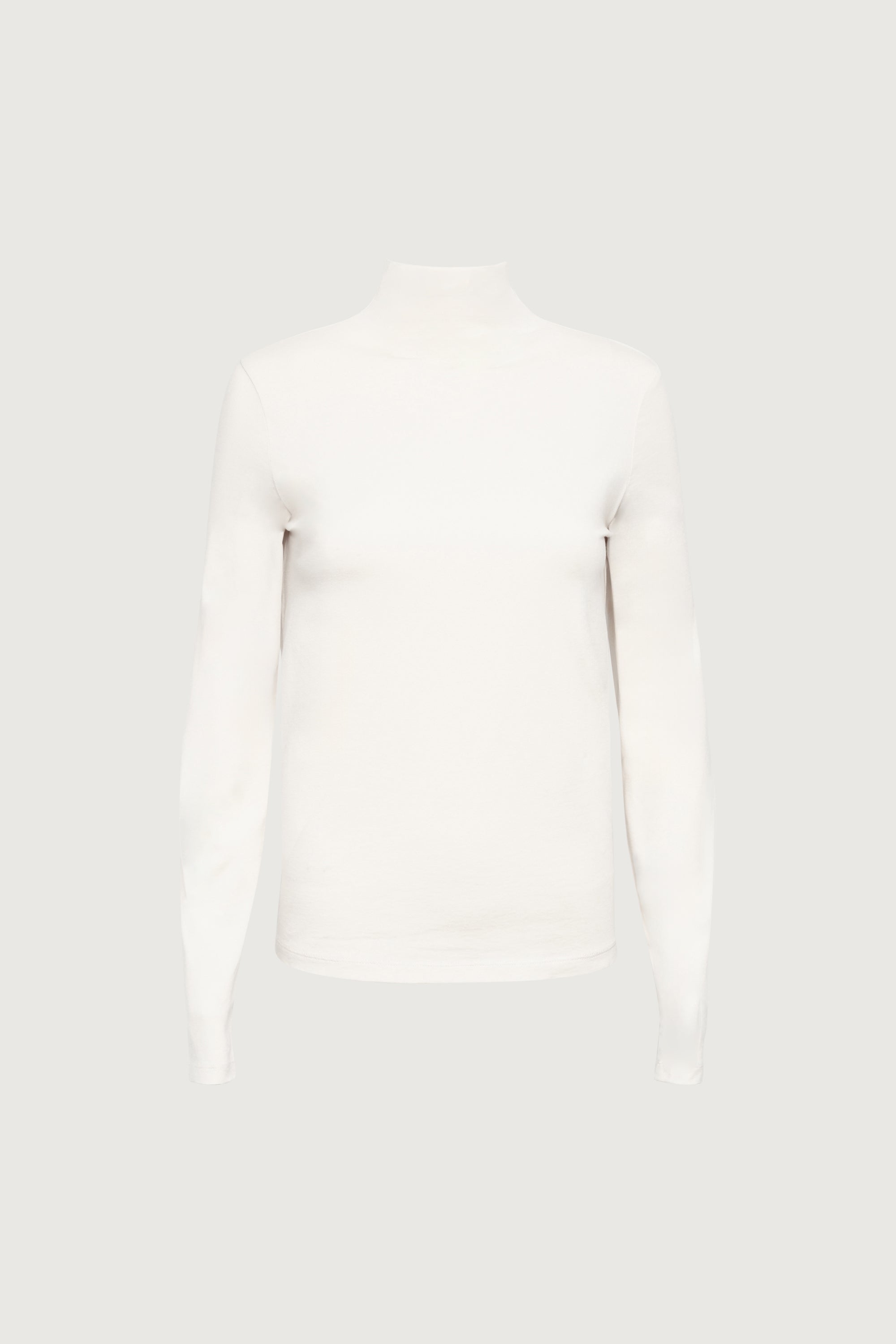 Fitted silhouette. Mock neck.