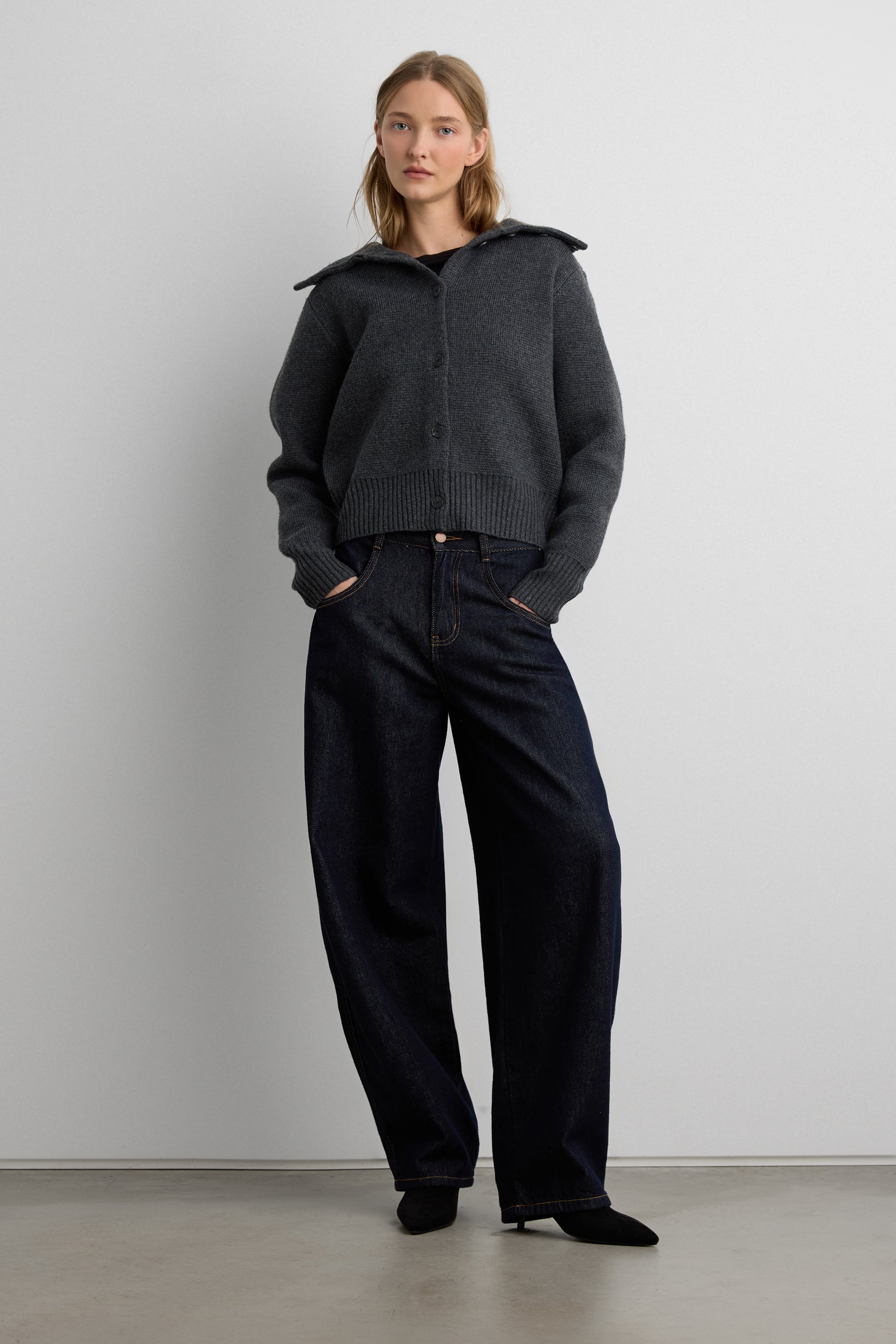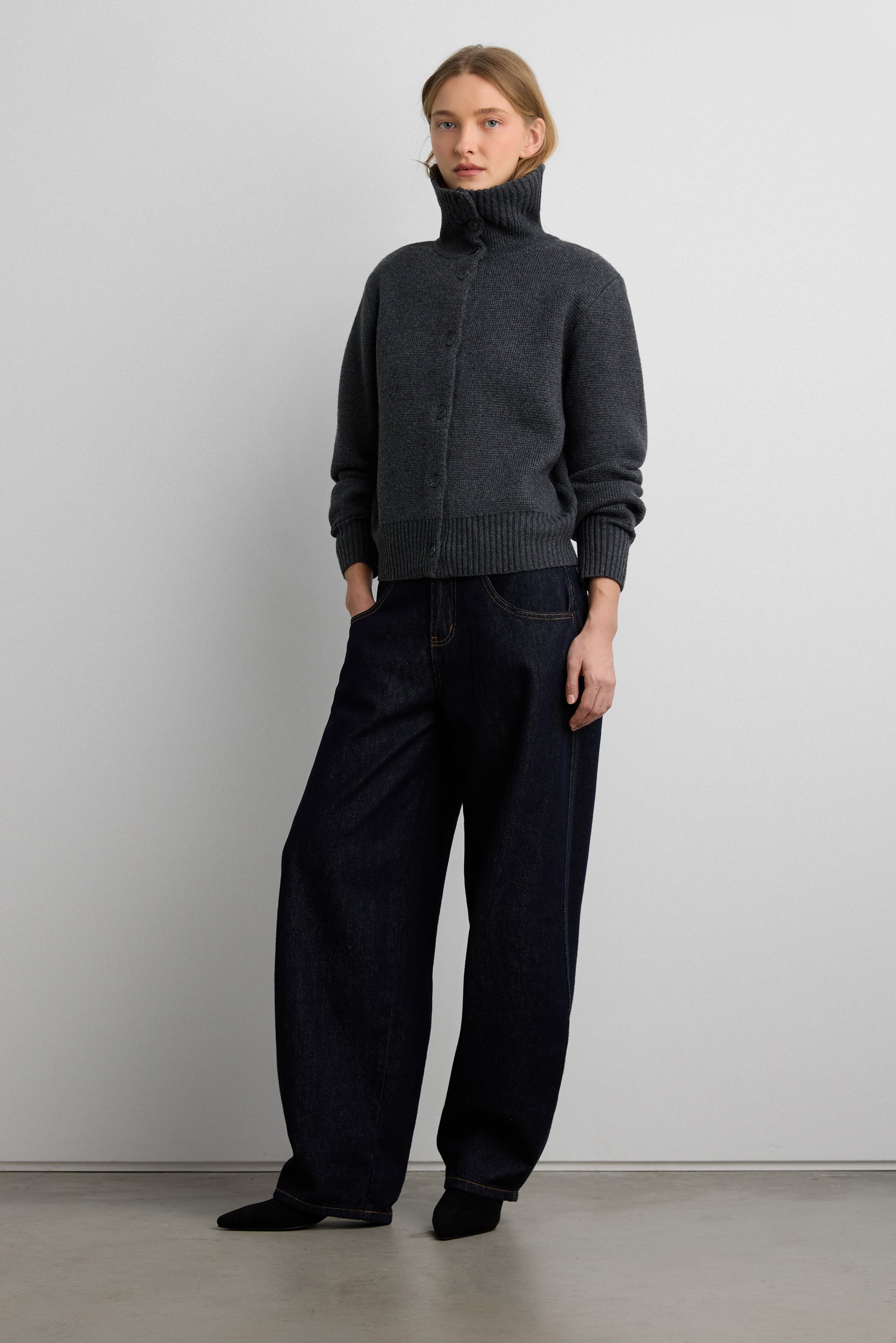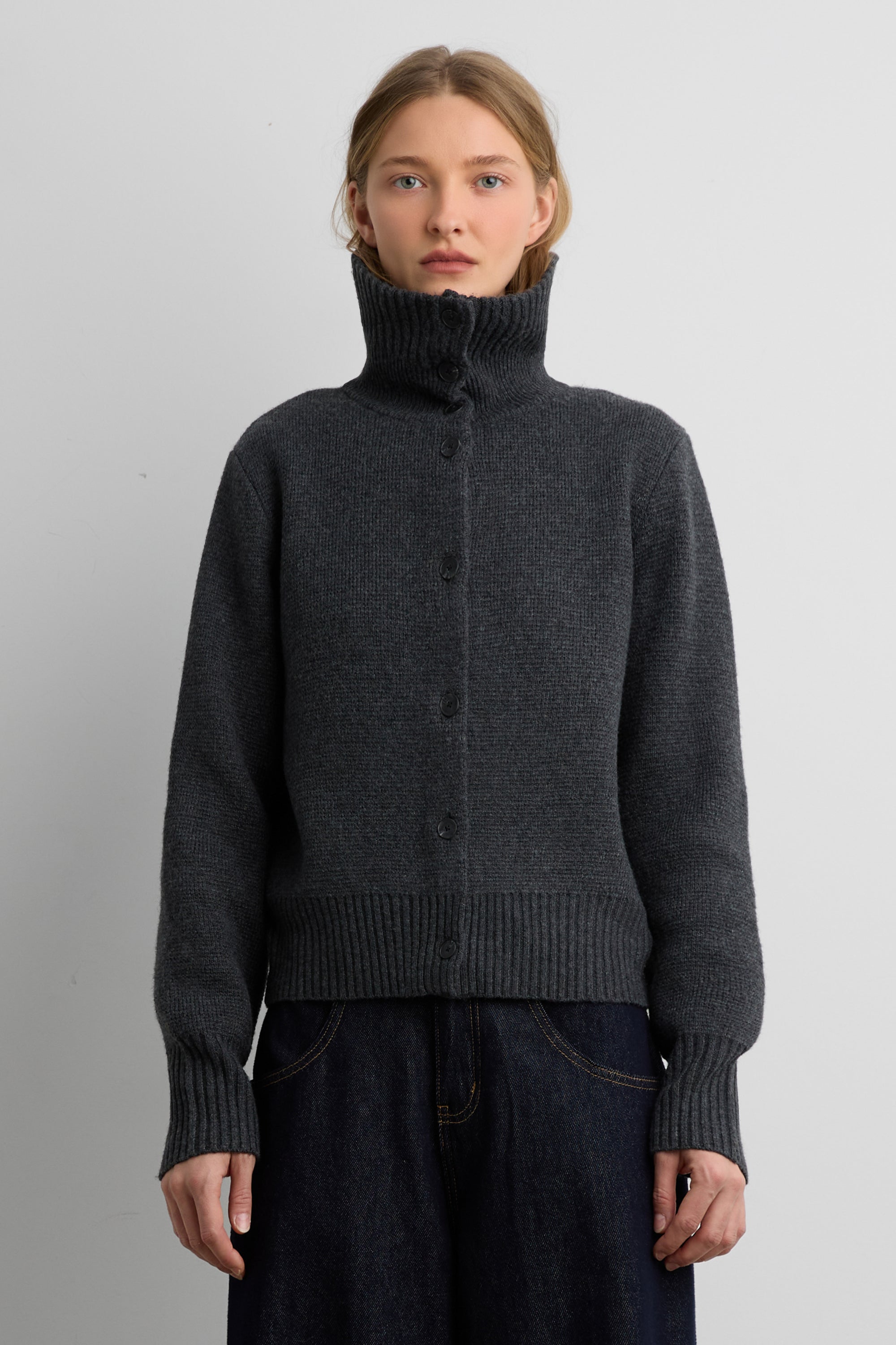 HIGH COLLAR BUTTON FRONT CARDIGAN