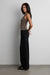 Woven sculpting fabric with stretch. Deep coop neckline. Racer back design.
