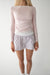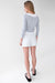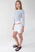 This long sleeve top has boat neckline and features side ruching and a layered effect over a white top. Wear it casually with shorts or a skirt this season.