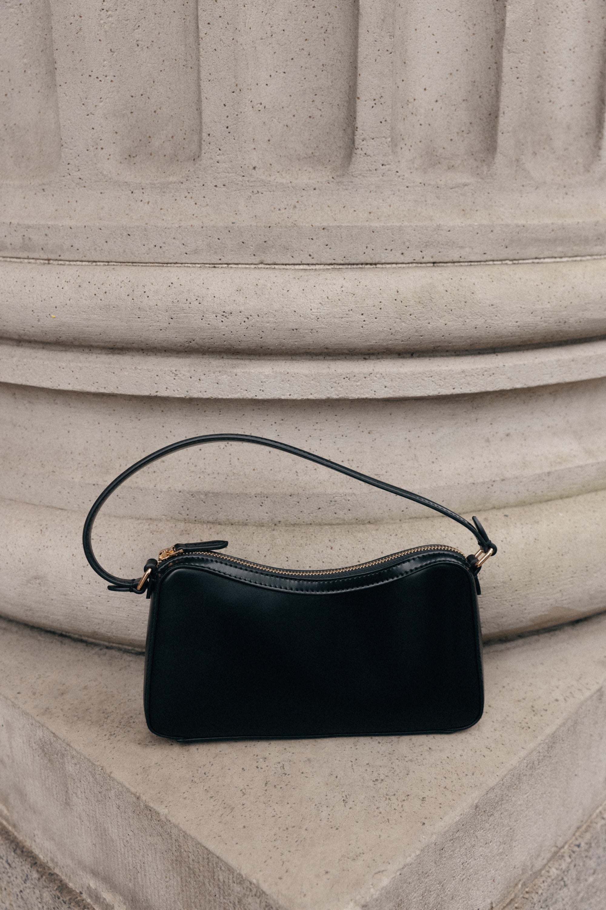 A minimalist shoulder bag with a softly curved silhouette and slim strap. Its clean structure and smooth finish make it a versatile everyday piece that complements both casual and tailored looks.