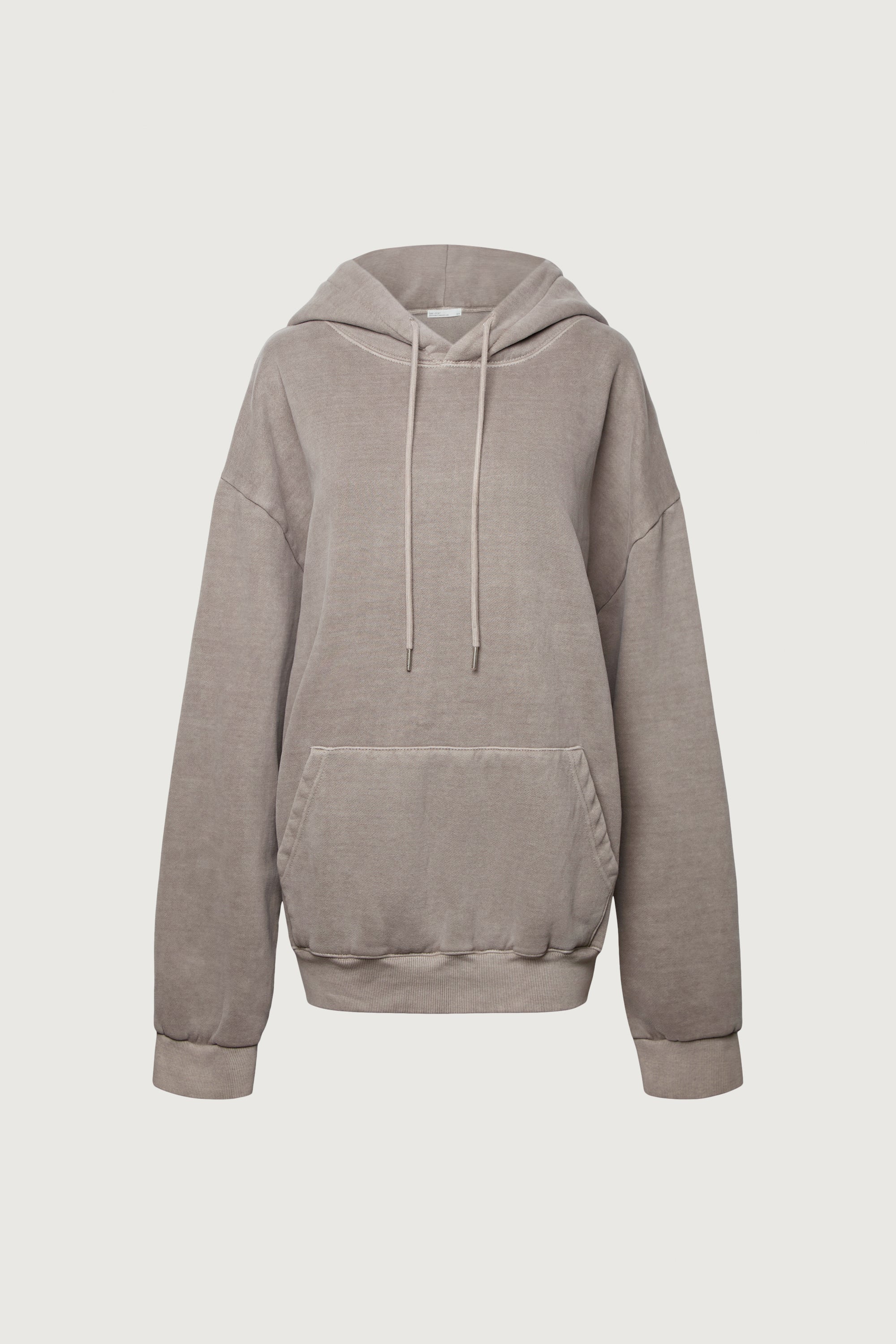 This fleece studio boyfriend hoodie is crafted from a soft, brushed heavyweight cotton blend with a vintage wash finish for a worn-in, lived-in feel. It's fleece lined for added warmth and is designed with dropped shoulders, a roomy hood, and a front kangaroo pocket, it delivers effortless comfort for everyday wear. Style it with matching sweatpants or denim for an easy off-duty look.
