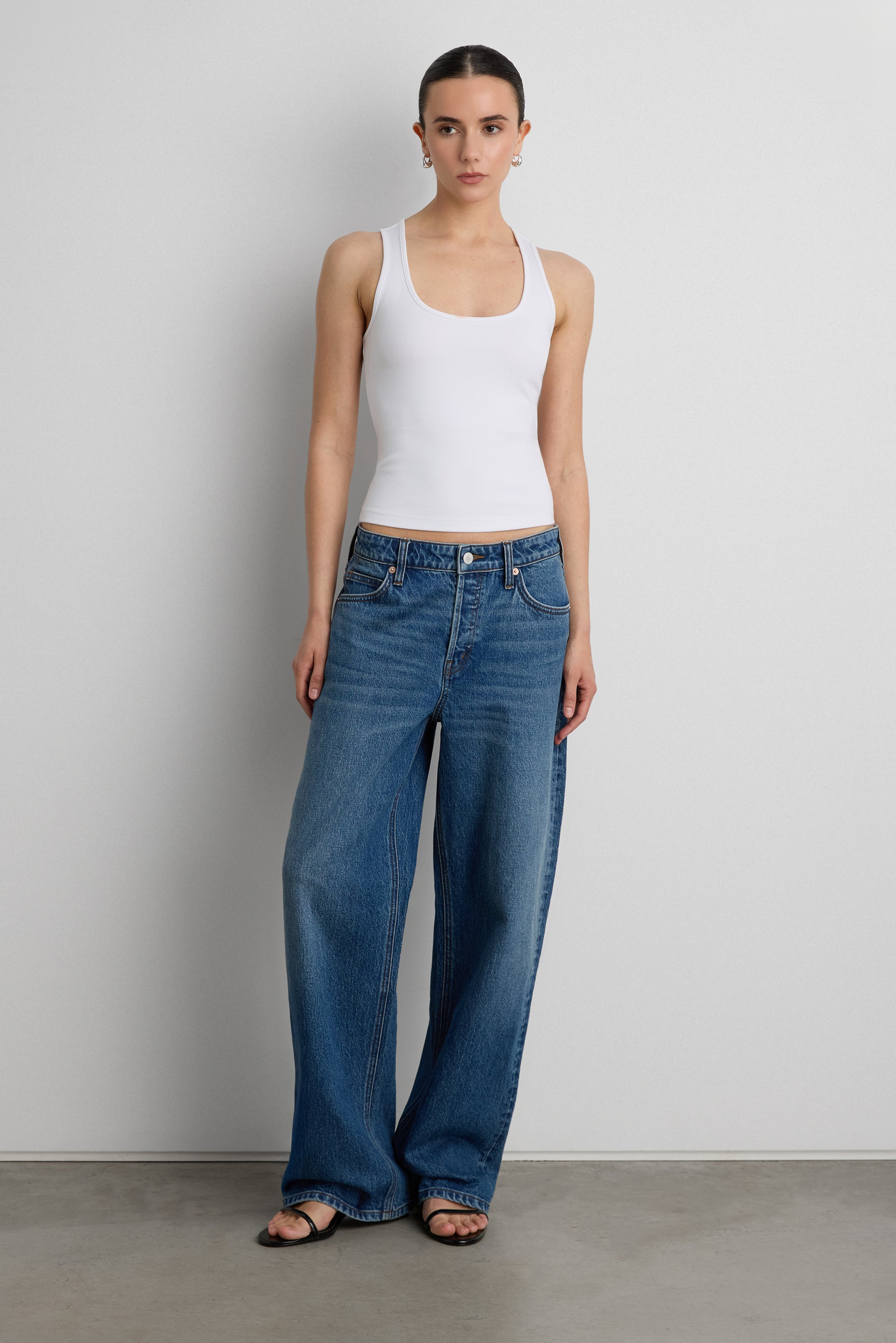 - Model 1 in Dark Medium Wash is 5'7" with a 24" waist and is wearing a size 26