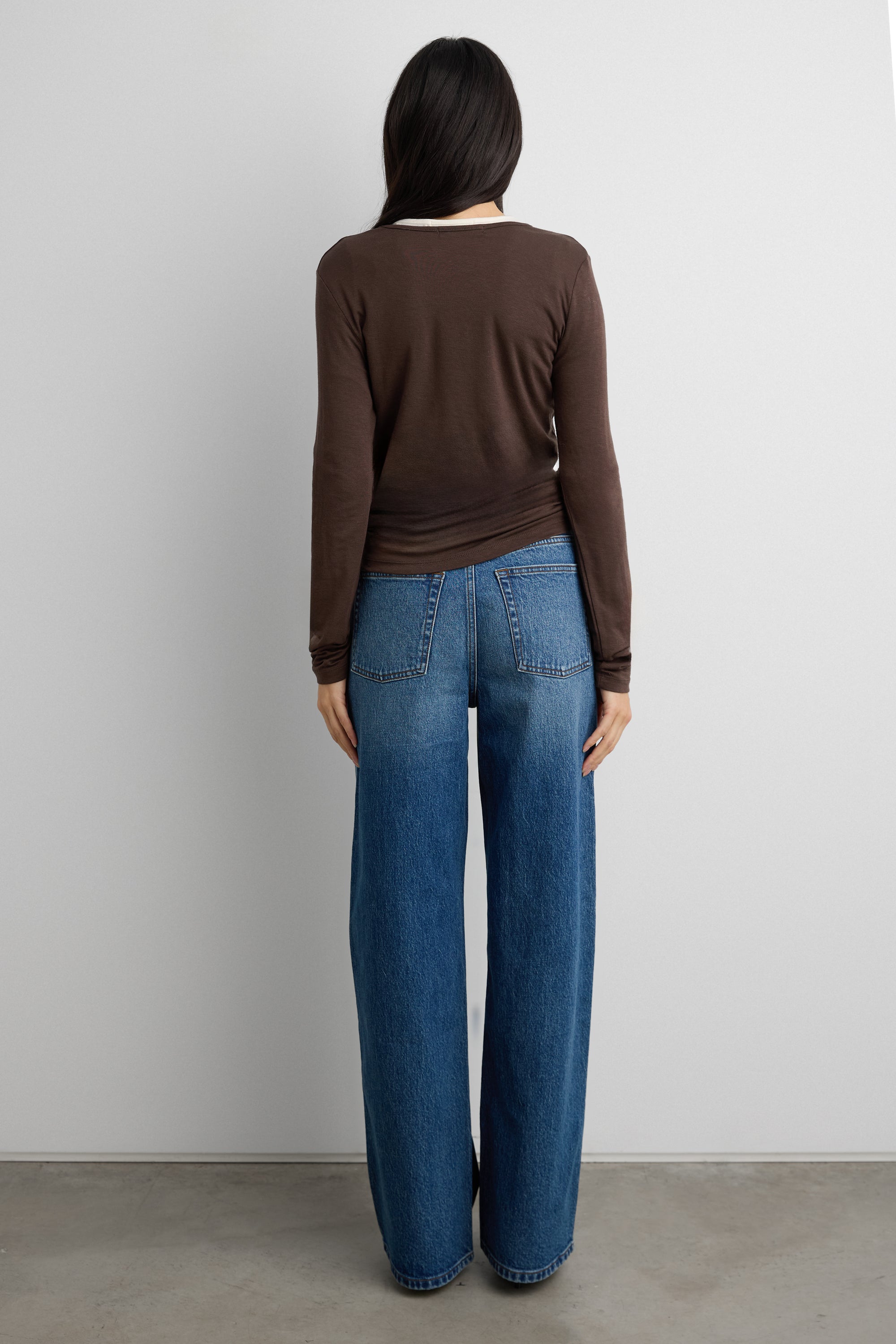 These straight leg vintage wash jeans are made in a relaxed fit and has a mid-rise waist. A staple to own this season, build endless outfits with this pair. Go for a more relaxed look and size up so it sit lower on the waist.