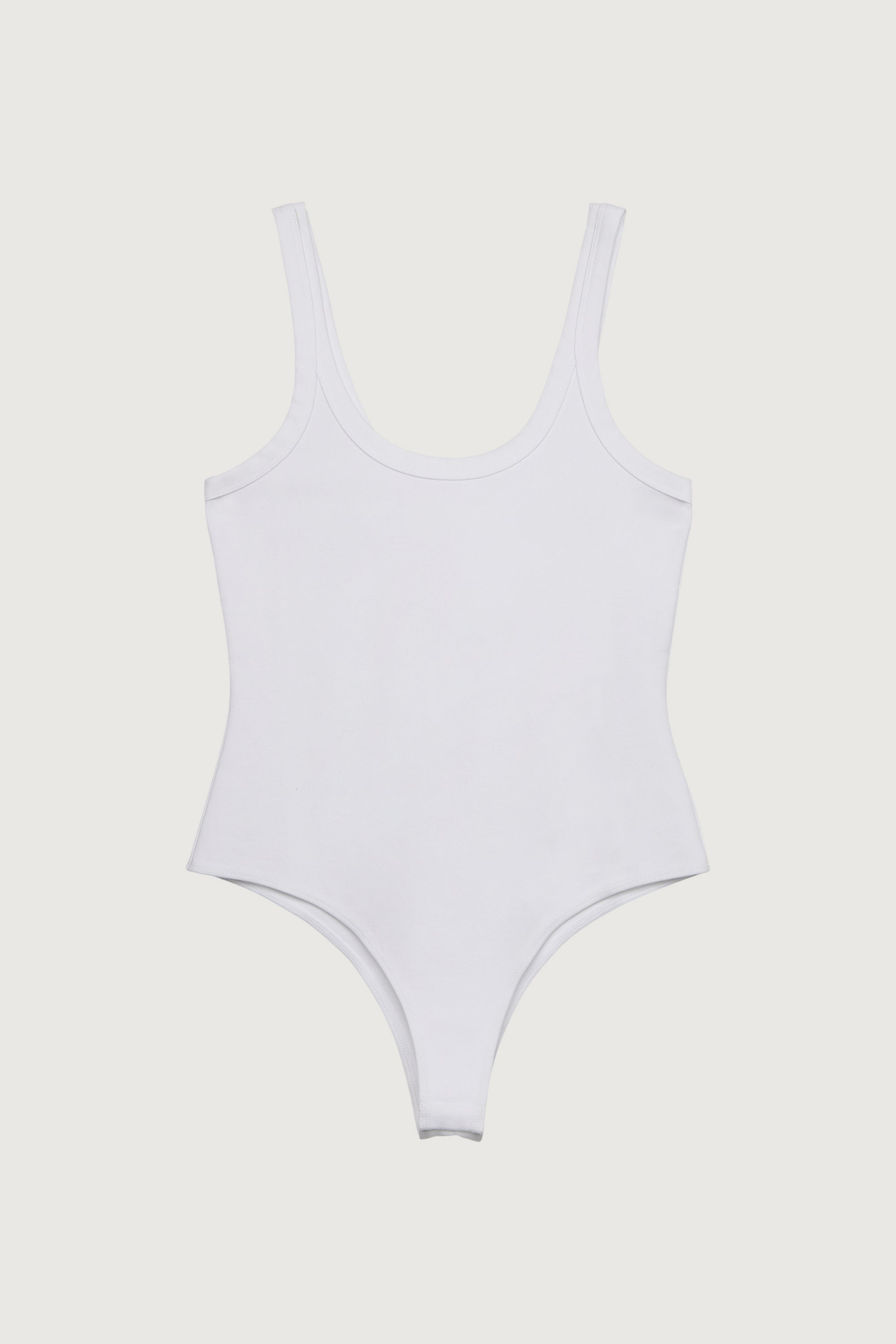 This scoop neckline bodysuit is cut from a rayon blend that is thick enough to sculpt and flatter your figure. It's made with just enough stretch for all day comfort. It's the perfect top to wear with trousers or baggy jeans.