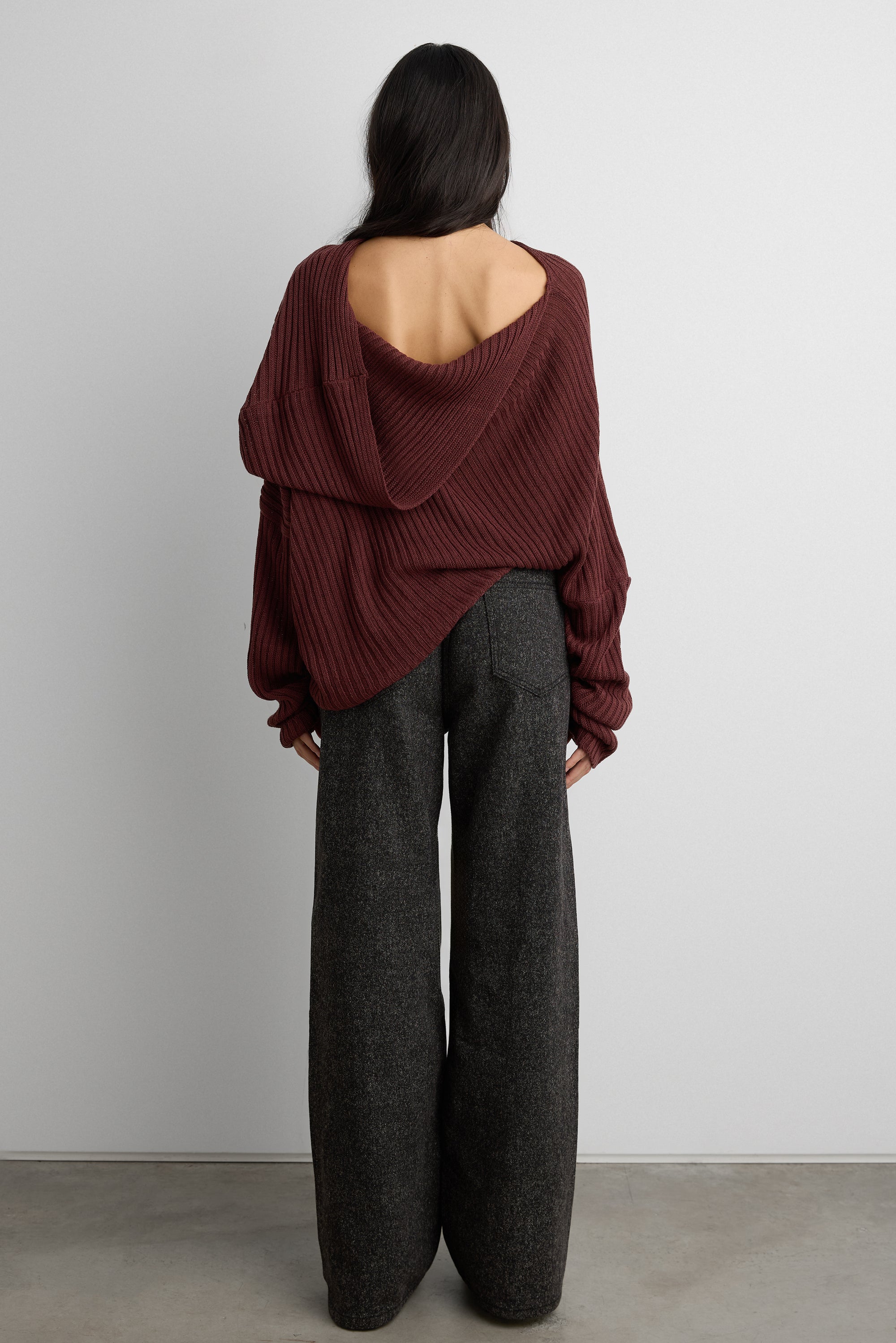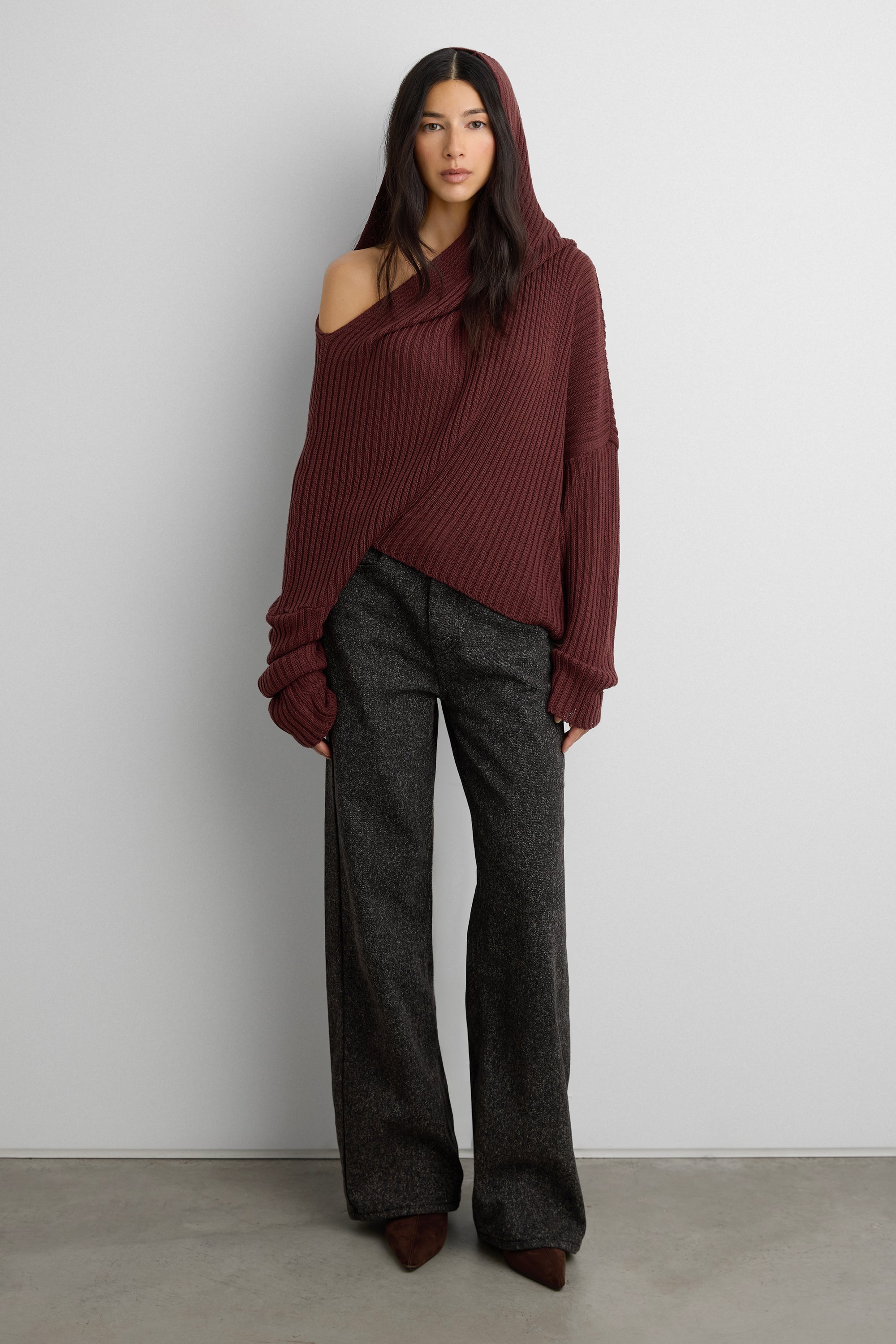 SLOUCHY OFF THE SHOULDER KNIT HOODIE
