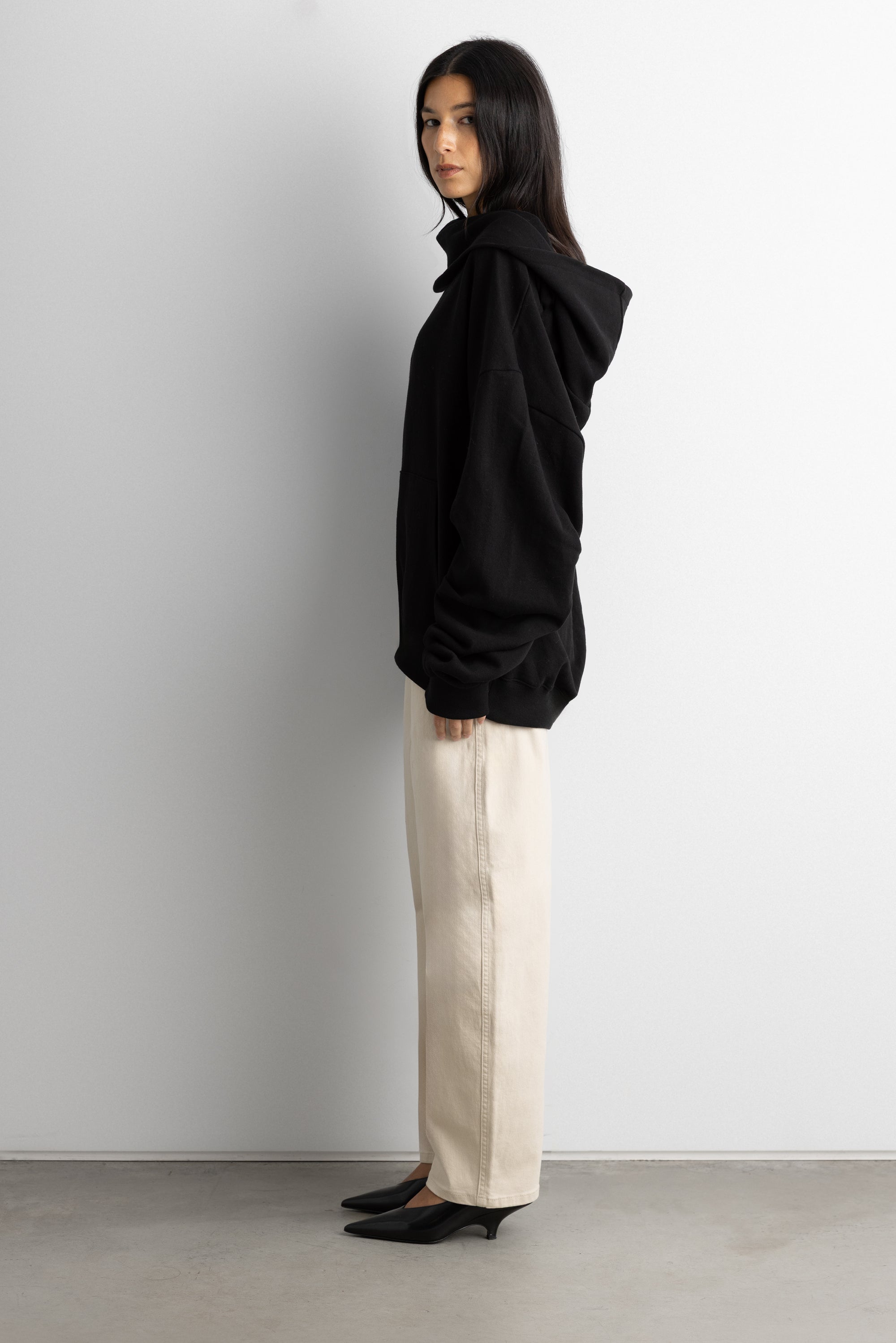 Midweight. Oversized. Boxy cut. Drop shoulder. Turtle neck hood. Kangaroo pockets.