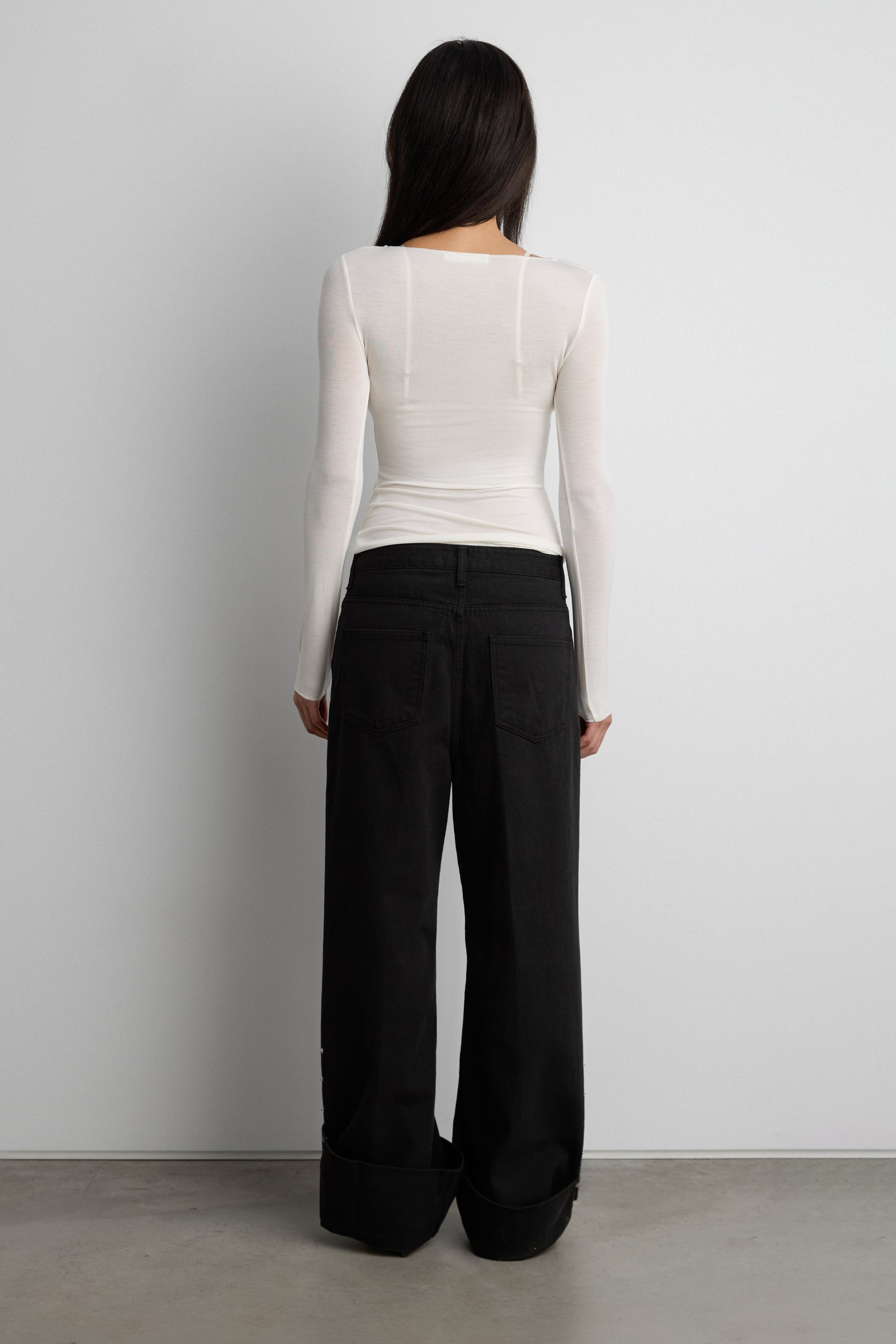 STRAIGHT LEG PANT WITH SIDE BUTTON DETAIL