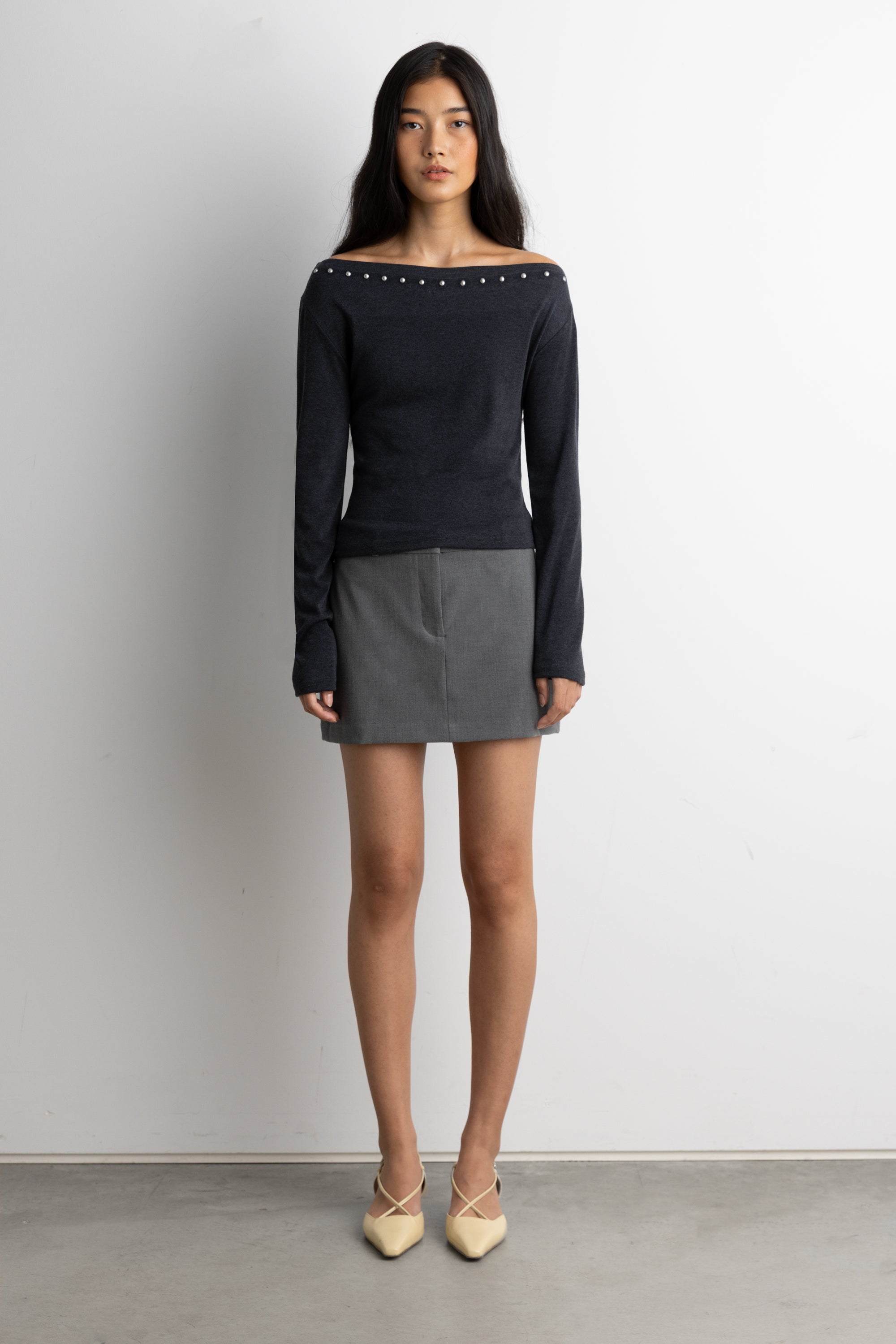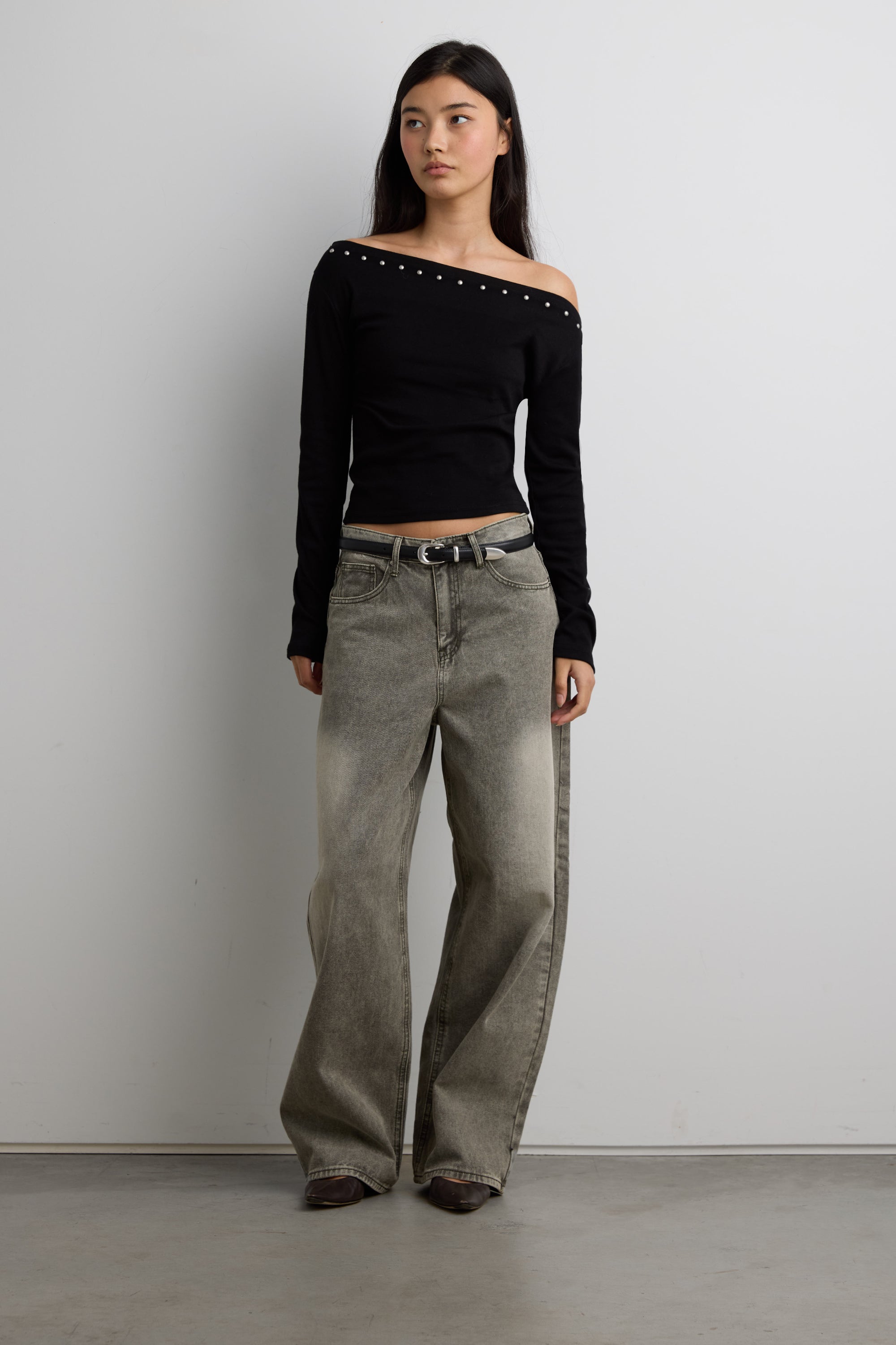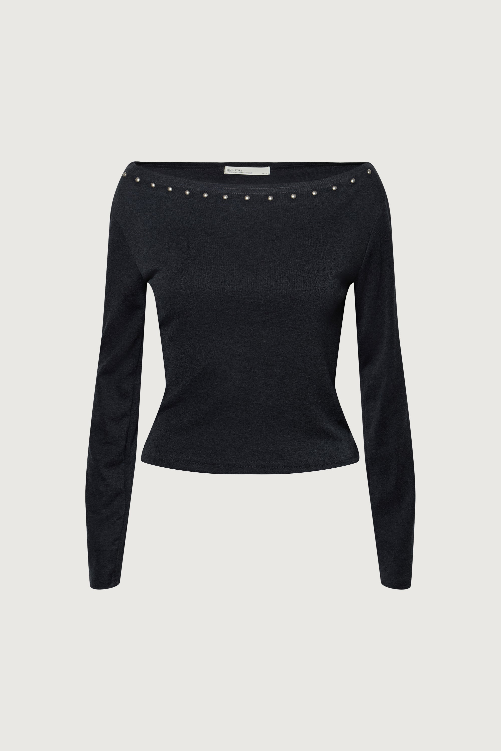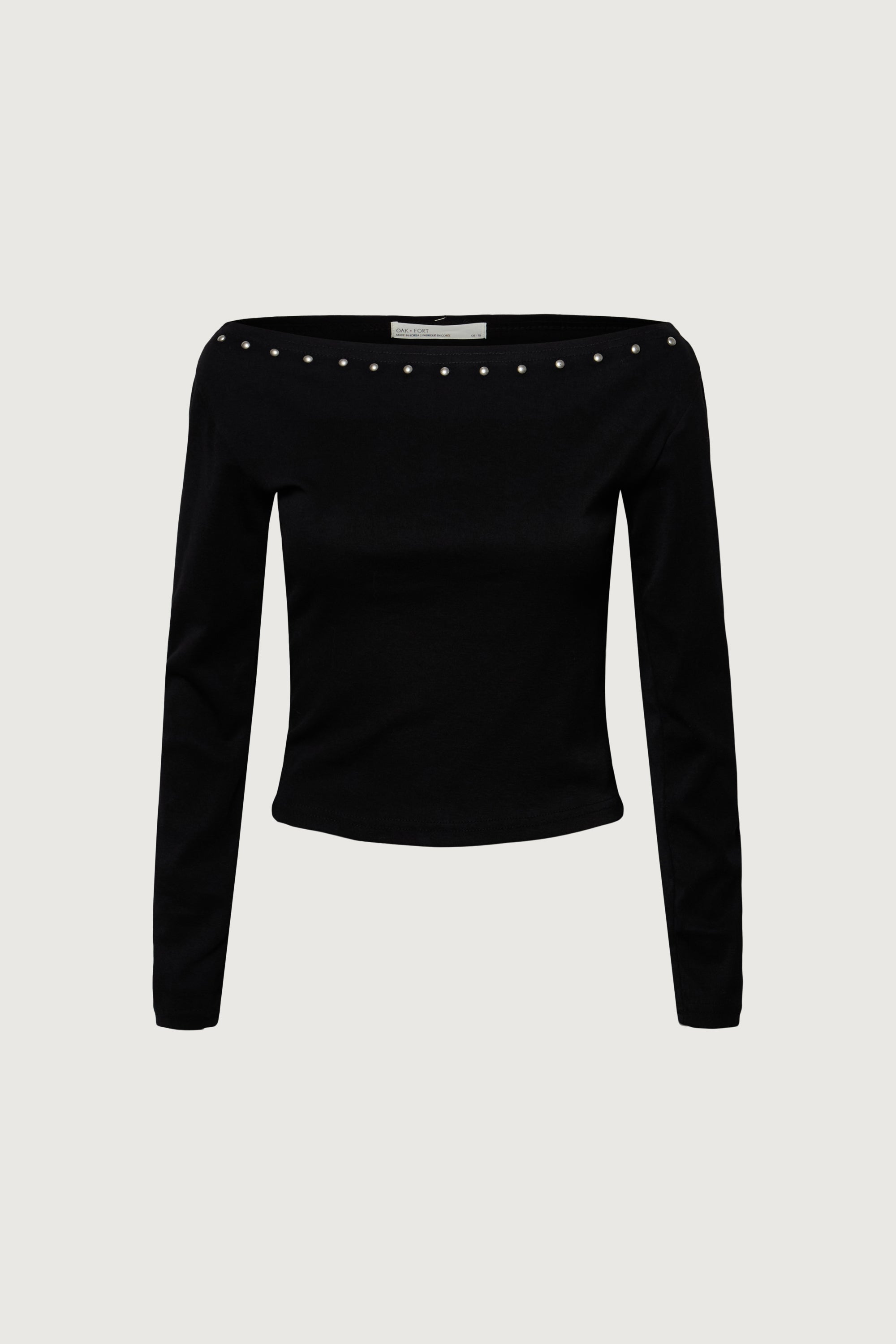 This off the shoulder is made in a body-hugging fit and is detailed with studs along the top. A versatile piece you can wear with any bottoms from trousers to jeans.
